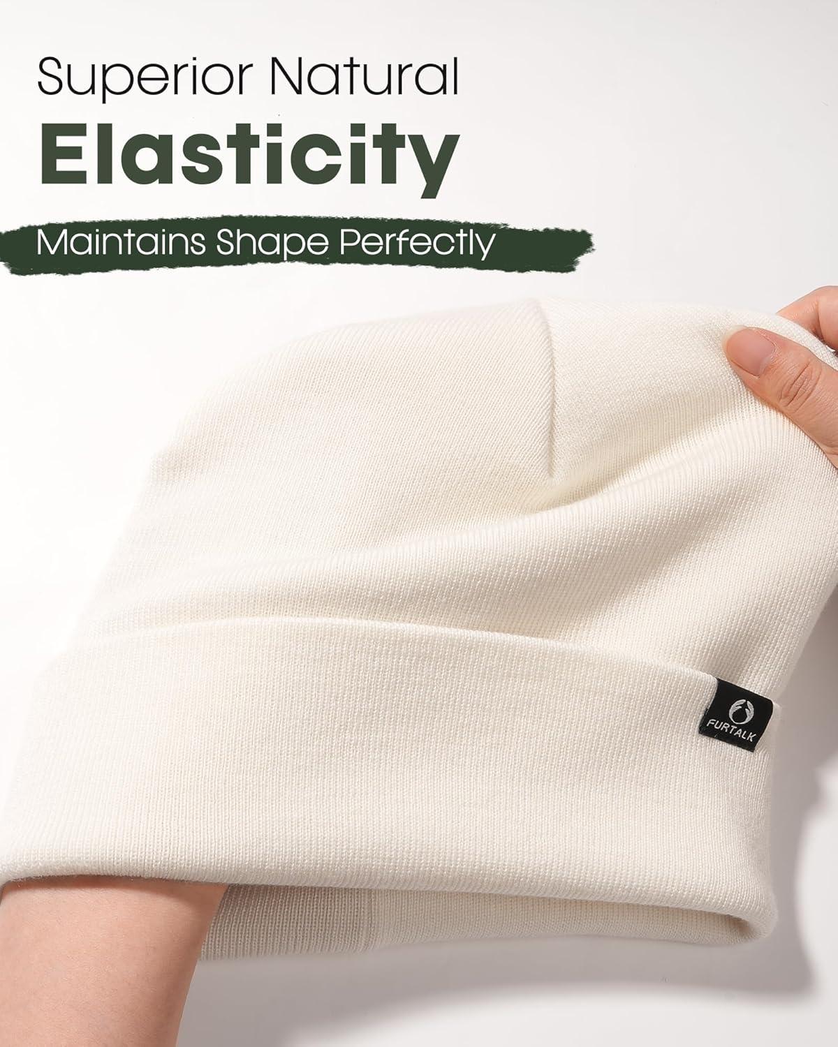 FURTALK 100% Merino Wool Beanie Hat for Men Women Warm Winter Hat Double Layer Knitted Beanies(Beige)