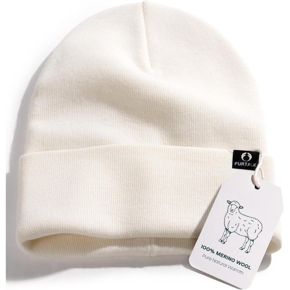 imageFURTALK 100 Merino Wool Beanie Hat for Men Women Warm Winter Hat Double Layer Knitted BeaniesBeige