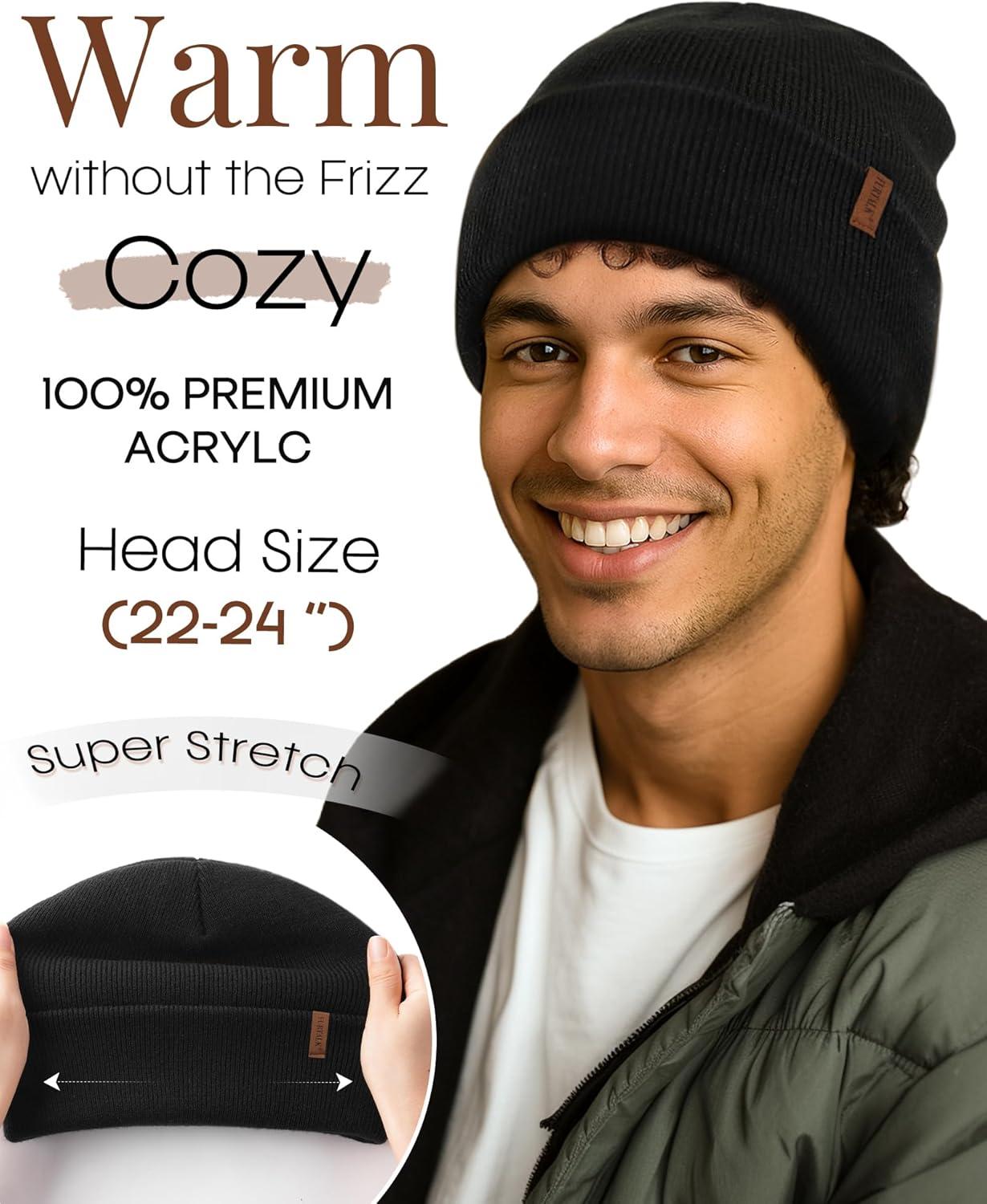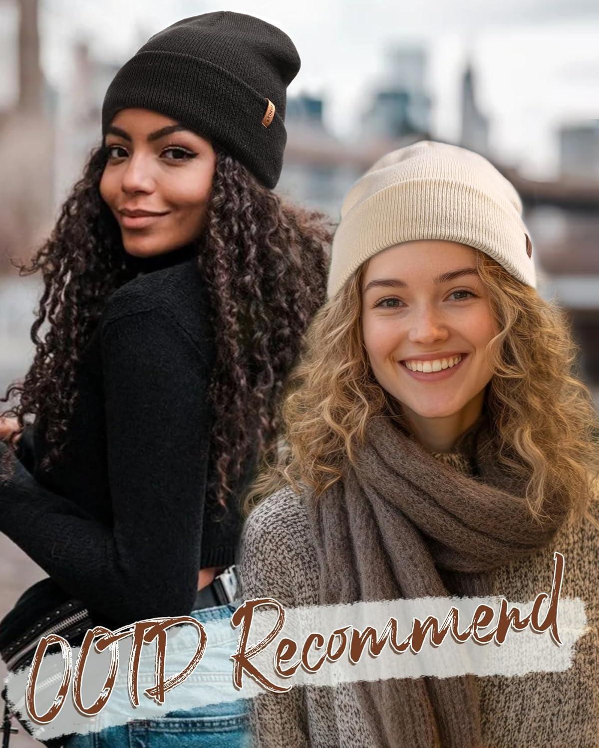 FURTALK 2 Pack Satin Lined Beanie for Men Women Acrylic Winter Hats Warm Silky Skull Cap(Black+beige)