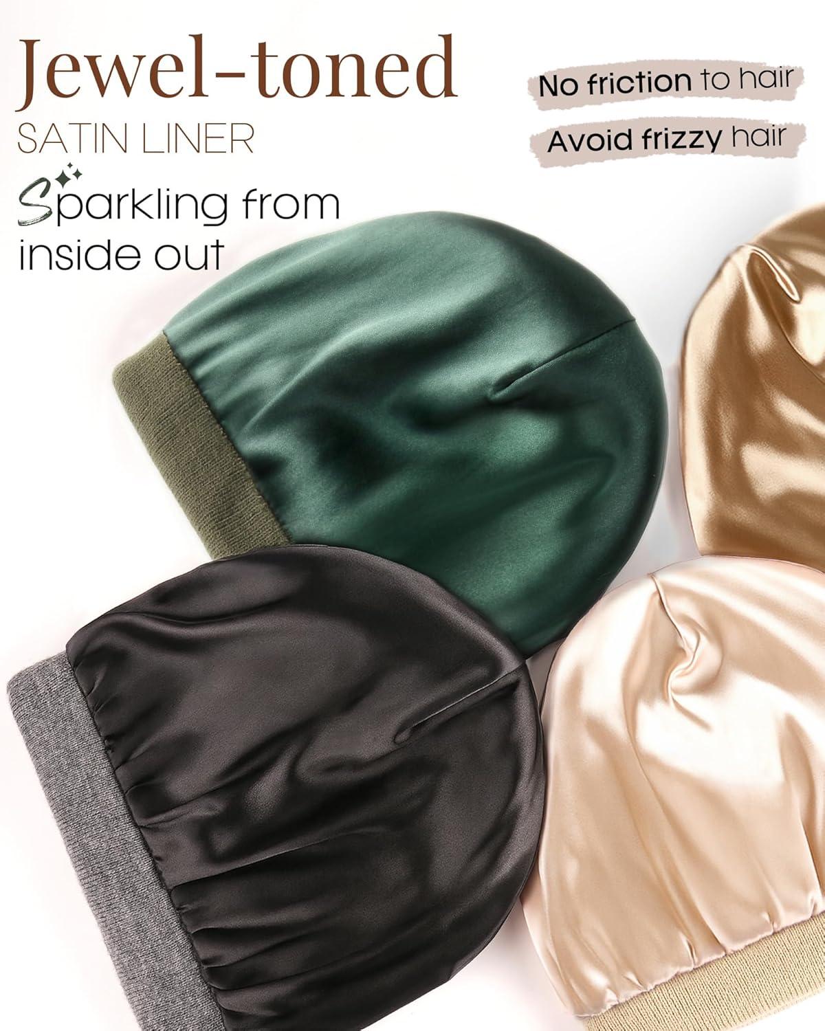 imageFURTALK 2 Pack Satin Lined Beanie for Men Women Acrylic Winter Hats Warm Silky Skull CapBlackgreen