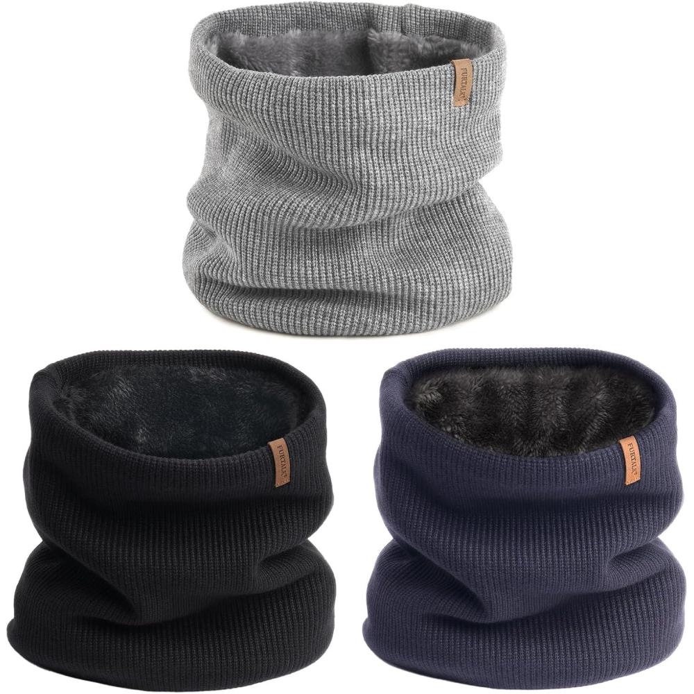 FURTALK 3 Pack Winter Scarf for Men Neck Gaiter Women Face Cover Neck Warmer Cold Weather Thick Warm Scarves(Blackgreynavy)