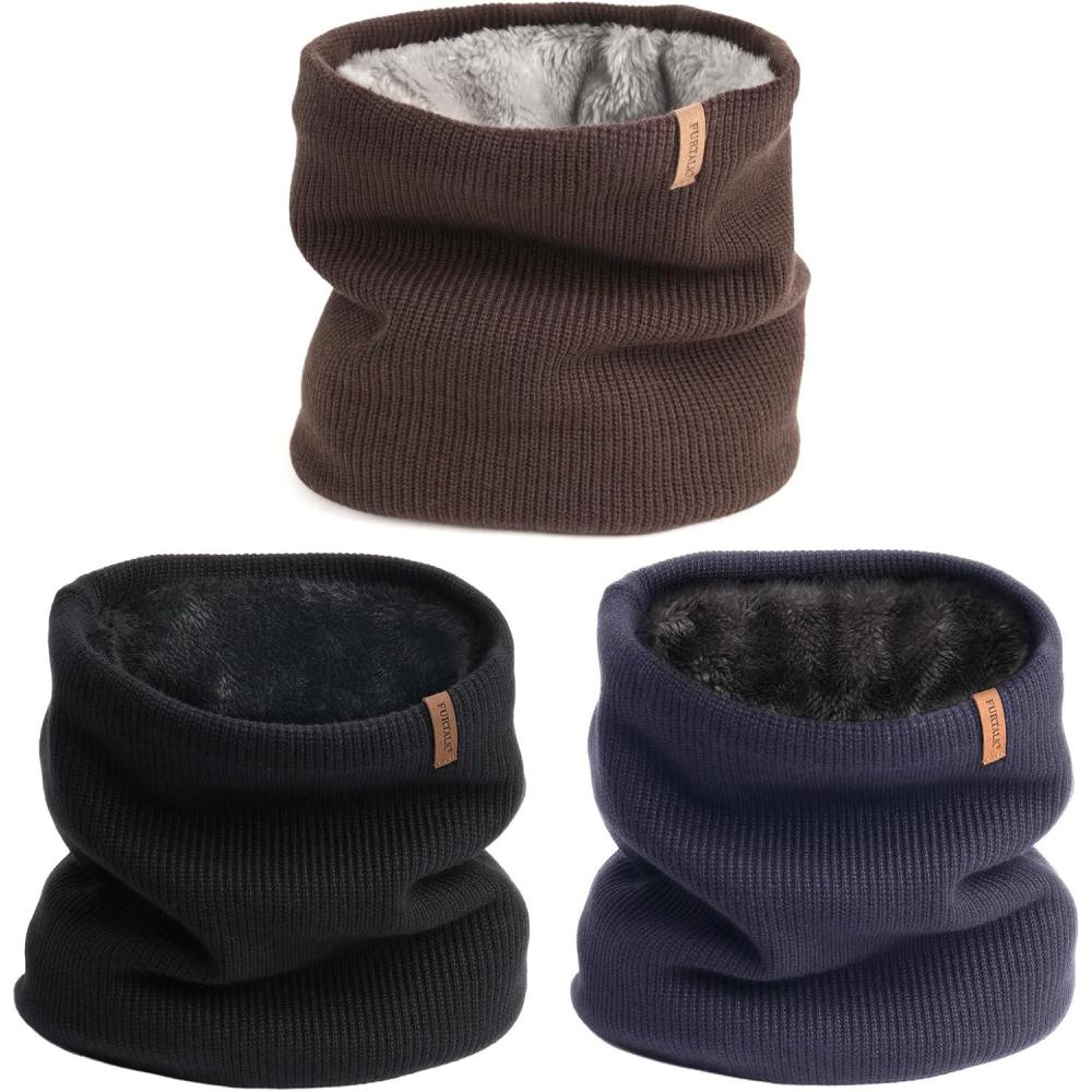 FURTALK 3 Pack Winter Scarf for Men Neck Gaiter Women Face Cover Neck Warmer Cold Weather Thick Warm Scarves(Navyblackcoffee)