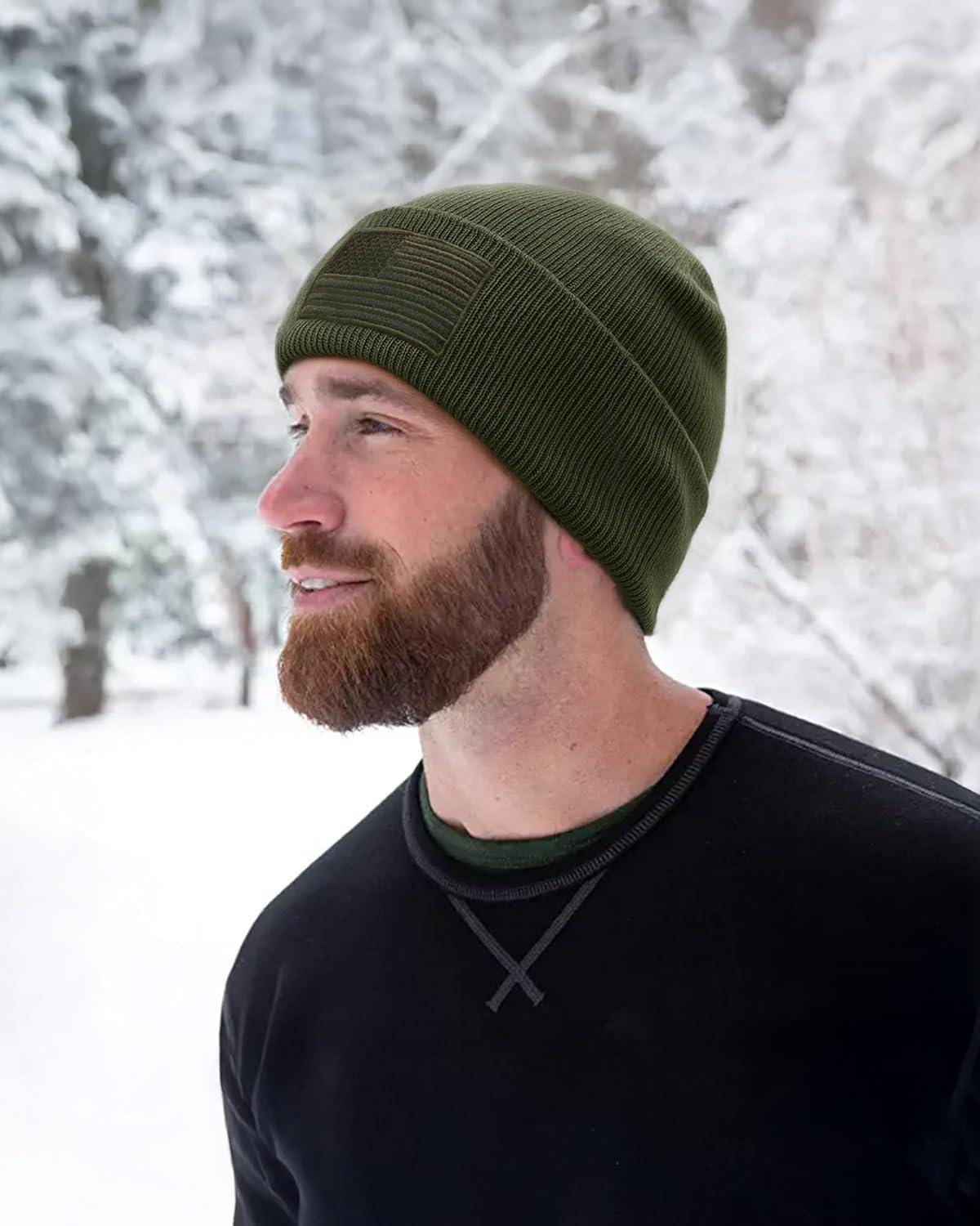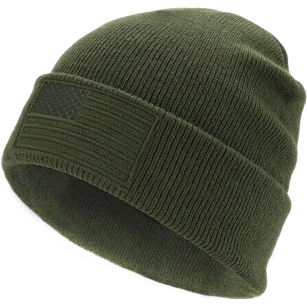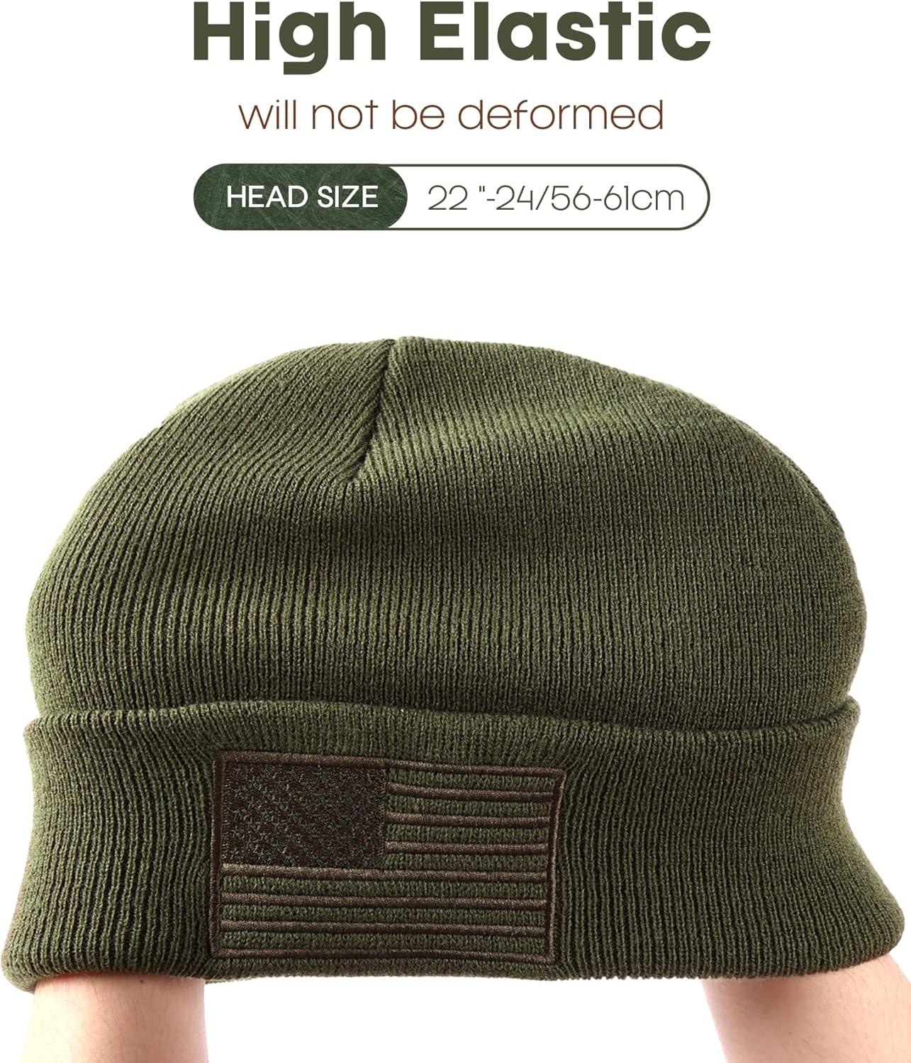 FURTALK American Flag Embroidered Beanie for Men Women Winter Hat Knitted Unisex Skull Cap(Green)