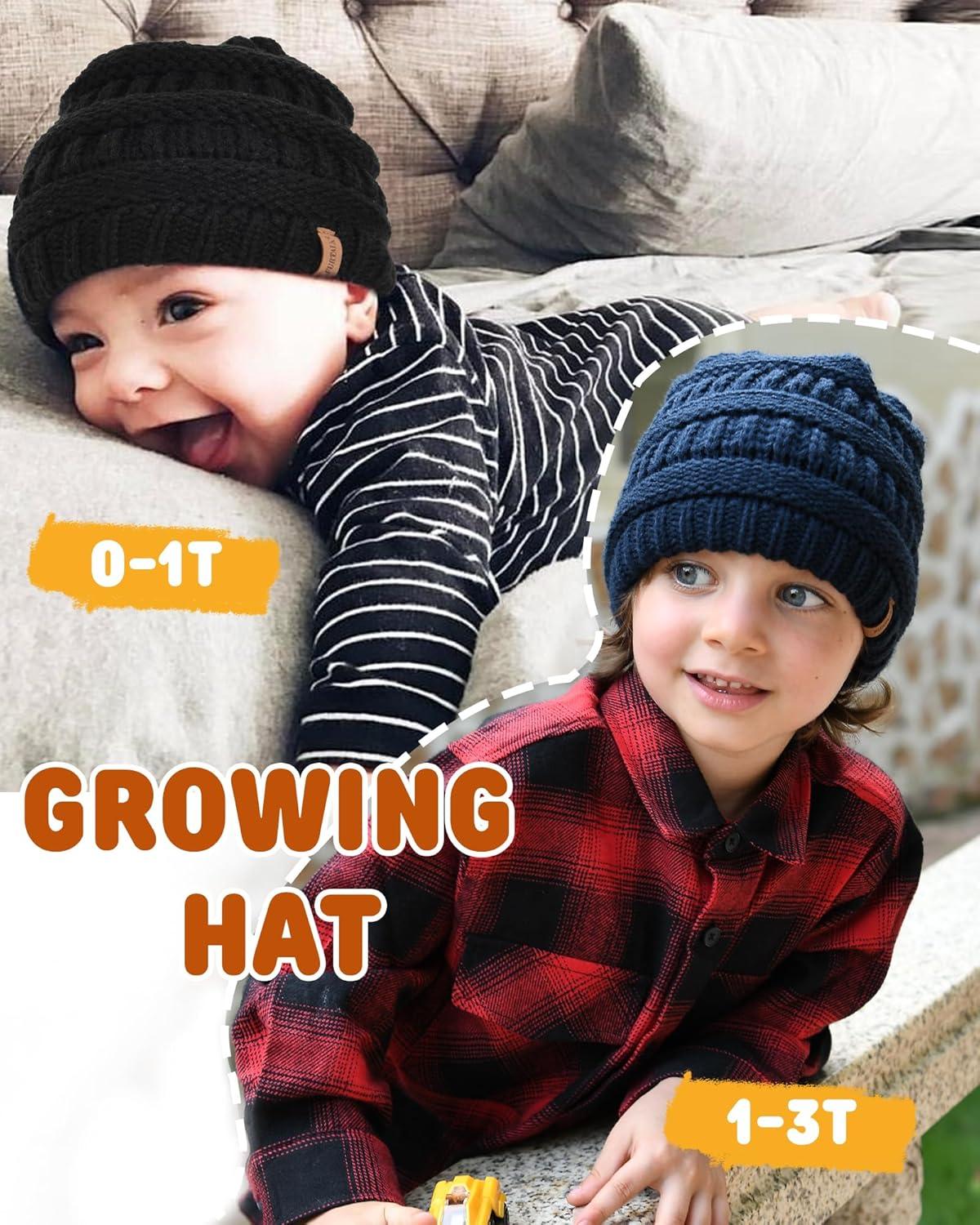 FURTALK Baby Beanie Winter Soft Warm Knit Hat 3 Pack Infant Toddler Slouchy Caps(Black+white+grey)