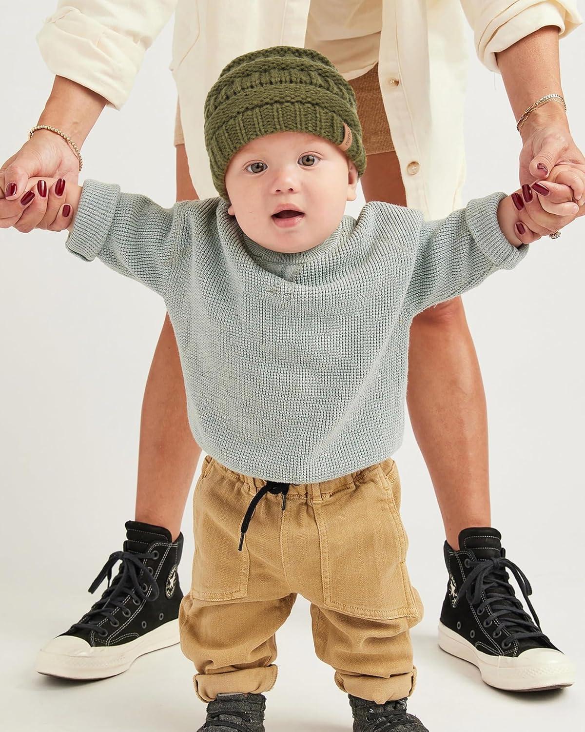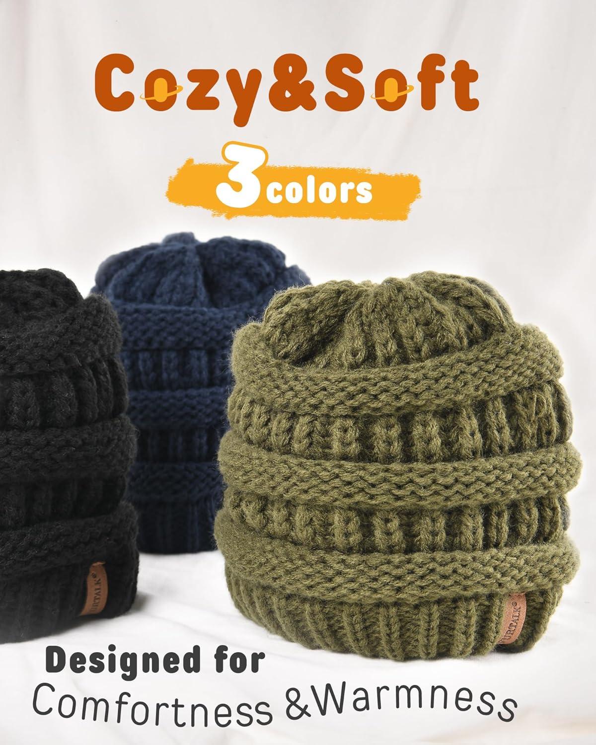 FURTALK Baby Beanie Winter Soft Warm Knit Hat 3 Pack Infant Toddler Slouchy Caps(Black+navy+green)