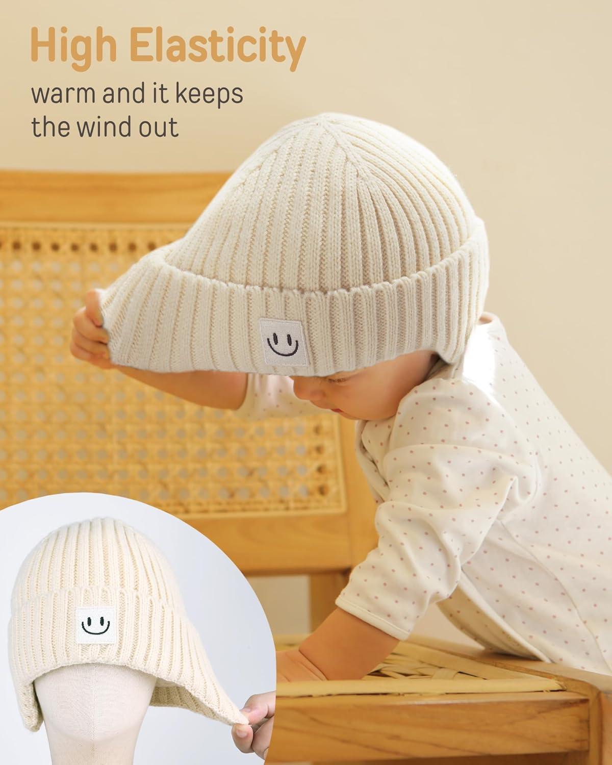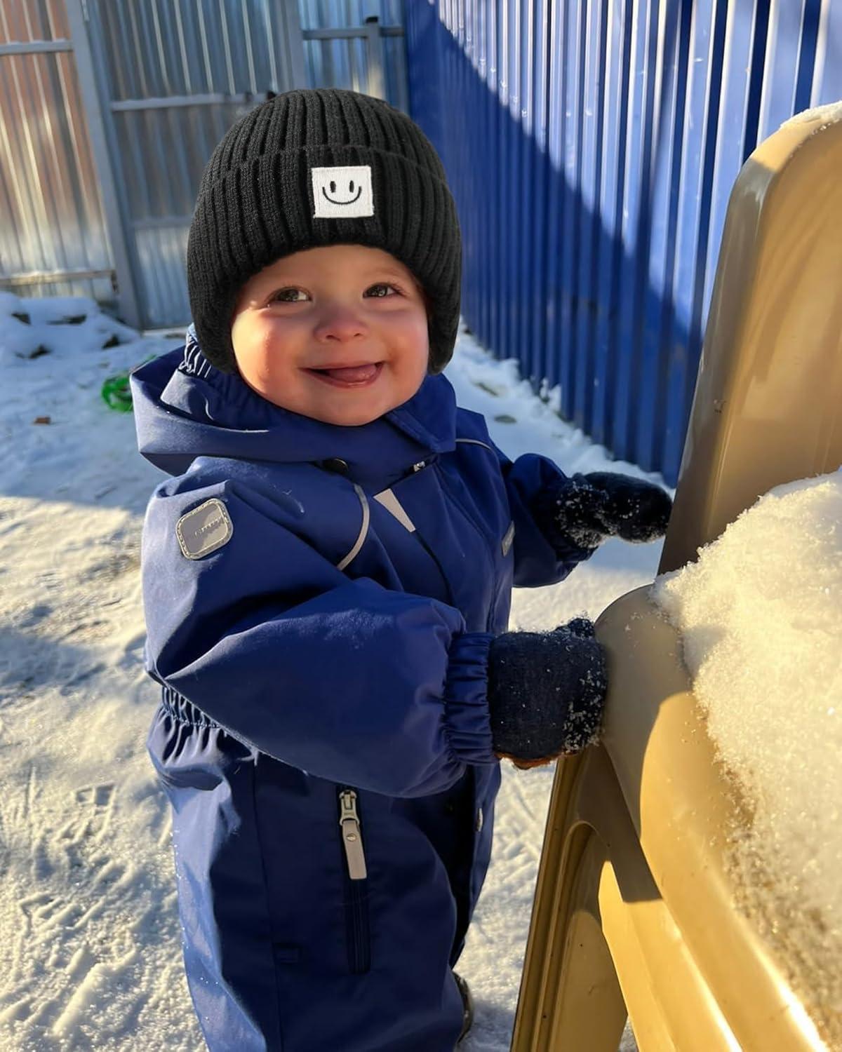 imageFURTALK Baby Beanie Winter Warm Hats Fleece Lined with Earflap Cute Knit Kids CapsBlackbeige