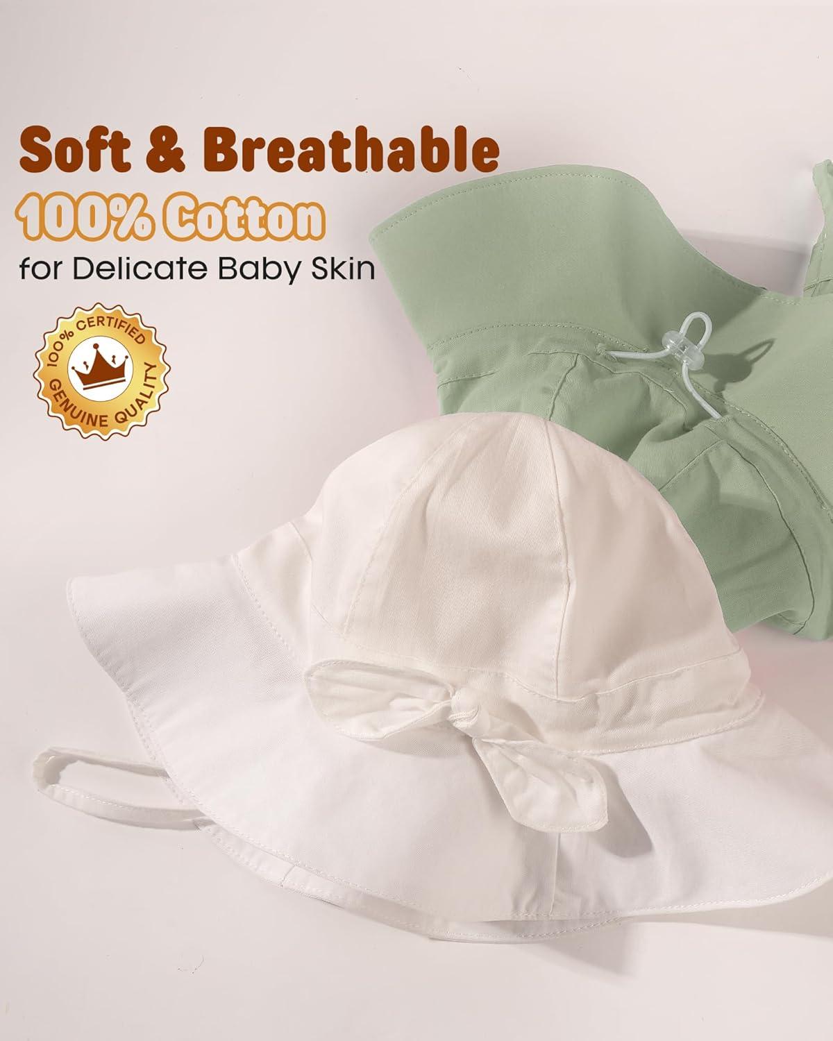 FURTALK Baby Sun Hat Toddler Girls Bucket Beach Hat Wide Brim UPF 50+ Adjuatable Travel Beach Essentials(White+green)