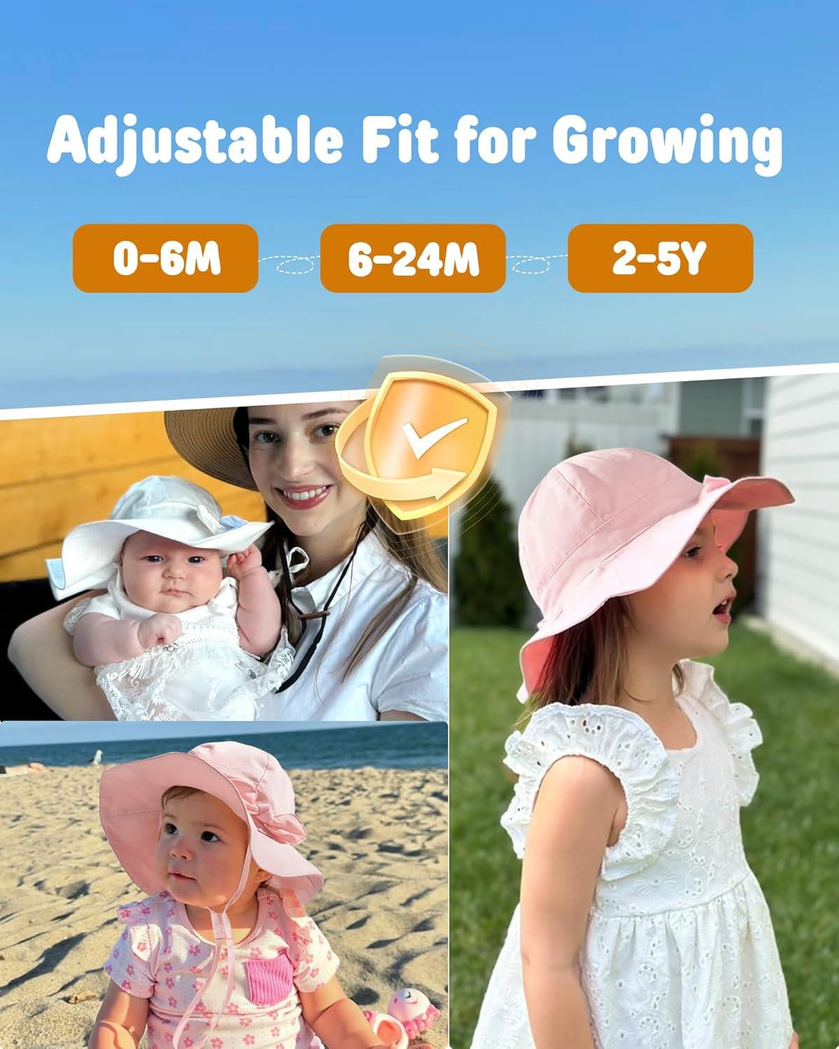 FURTALK Baby Sun Hat Toddler Girls Bucket Beach Hat Wide Brim UPF 50+ Adjuatable Travel Beach Essentials(White+rose Red)