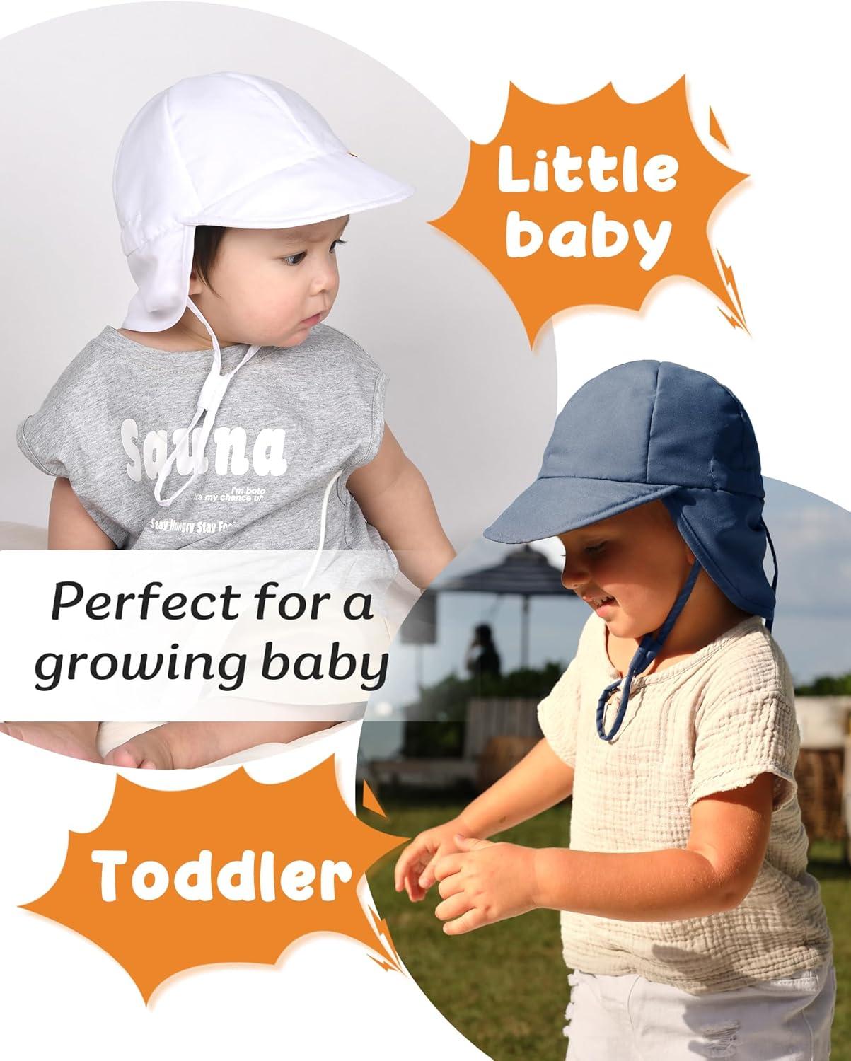 FURTALK Baby Sun Hat UV UPF 50 with Flap Ray Protection Toddler Infant Beach Hats for Boys Girls(White+grey)