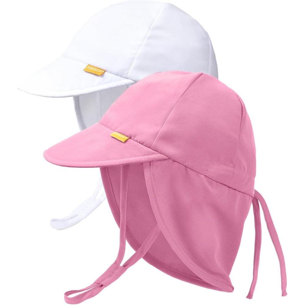 FURTALK Baby Sun Hat UV UPF 50 with Flap Ray Protection Toddler Infant Beach Hats for Boys Girls(White+pink)