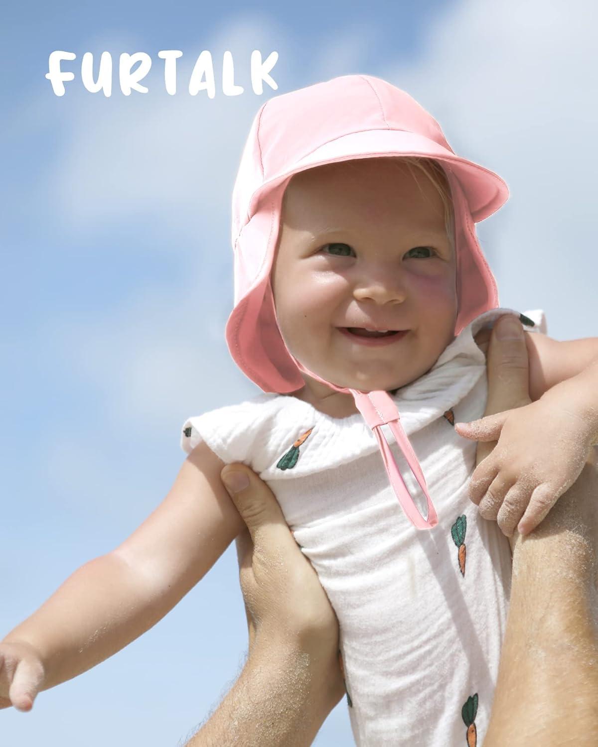 FURTALK Baby Sun Hat with Neck Flap UPF 50+ Adjustable Baby Boys Girls Summer Beach Hat for Traveling Swim Hat(Pink)