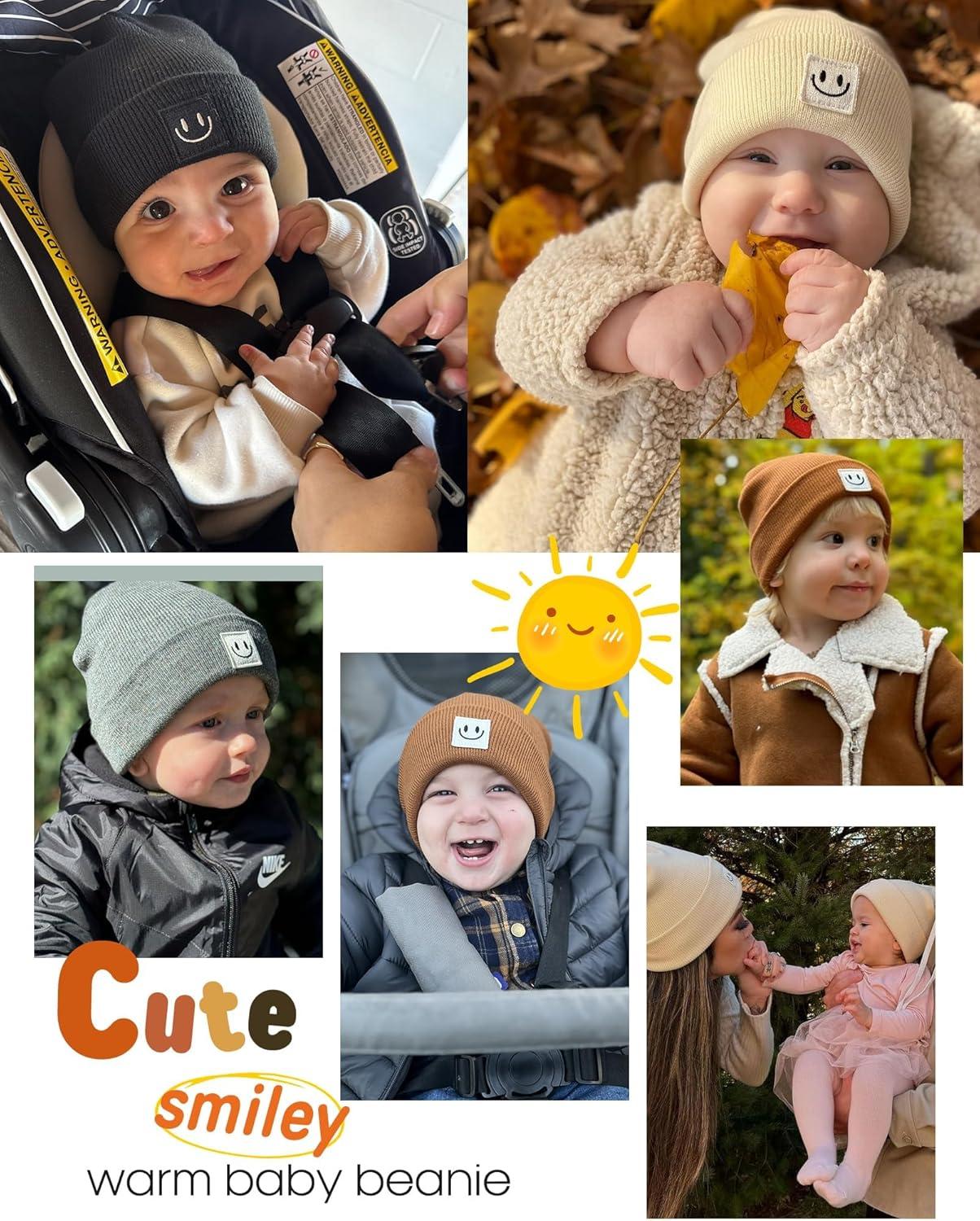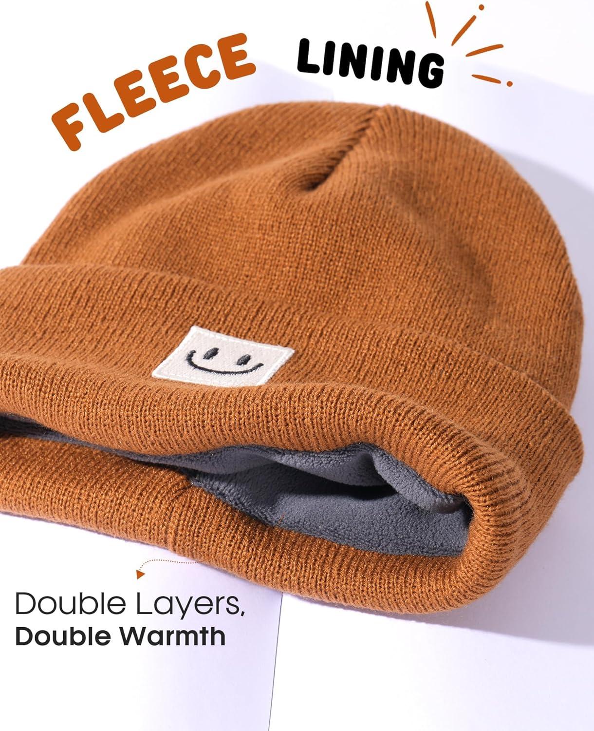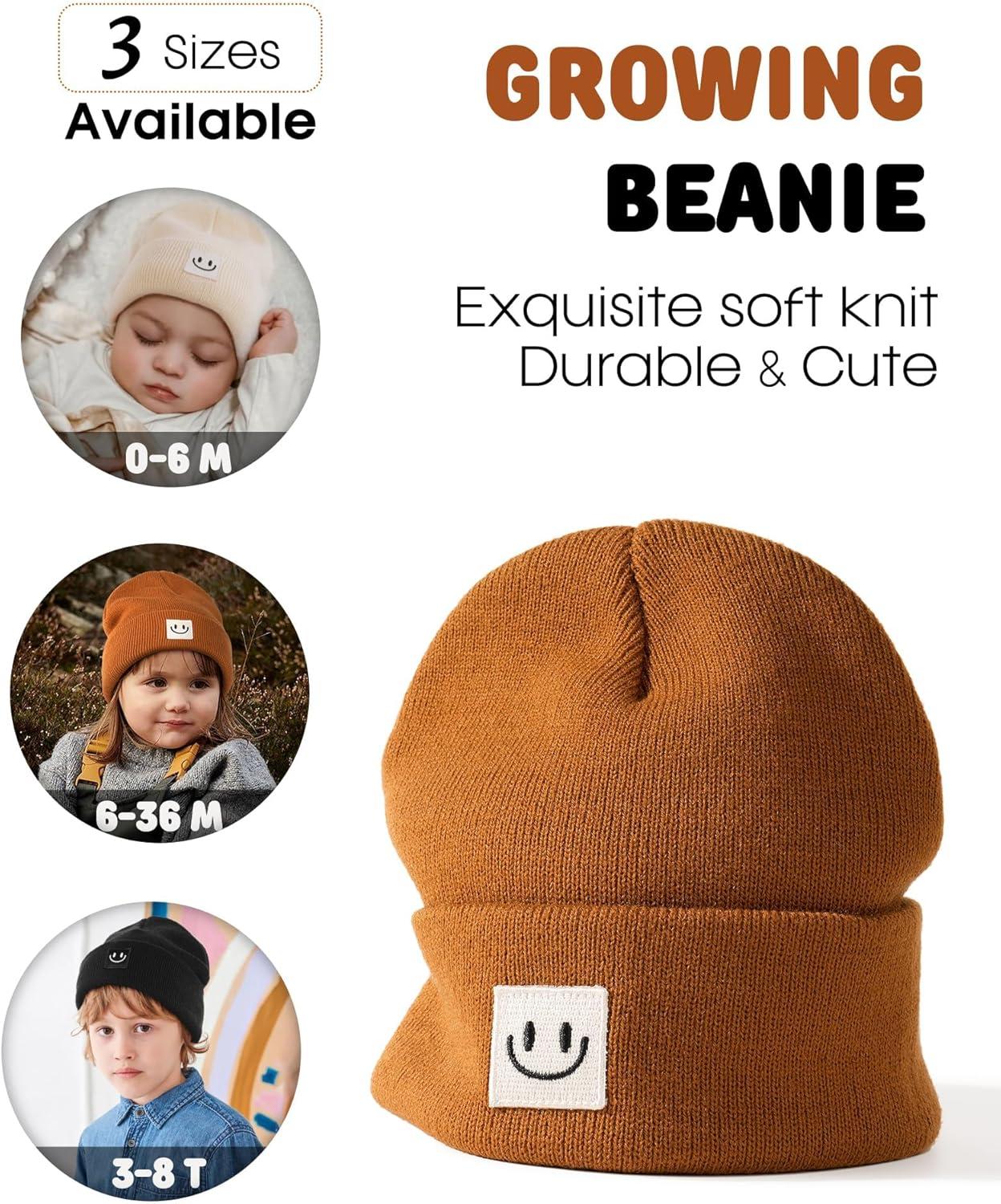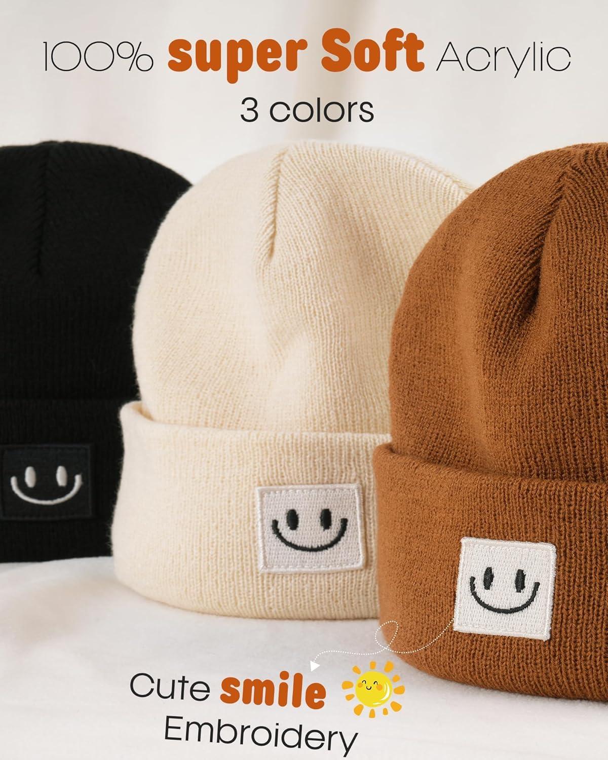 FURTALK Baby Toddler Winter Hat 3 Packs Baby Beanie Toddler Beanie Boys Girls Fleece Lined Kids Warm Knit Hats(Beige+black+caramel)