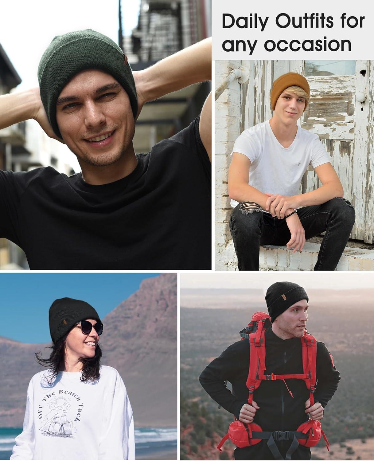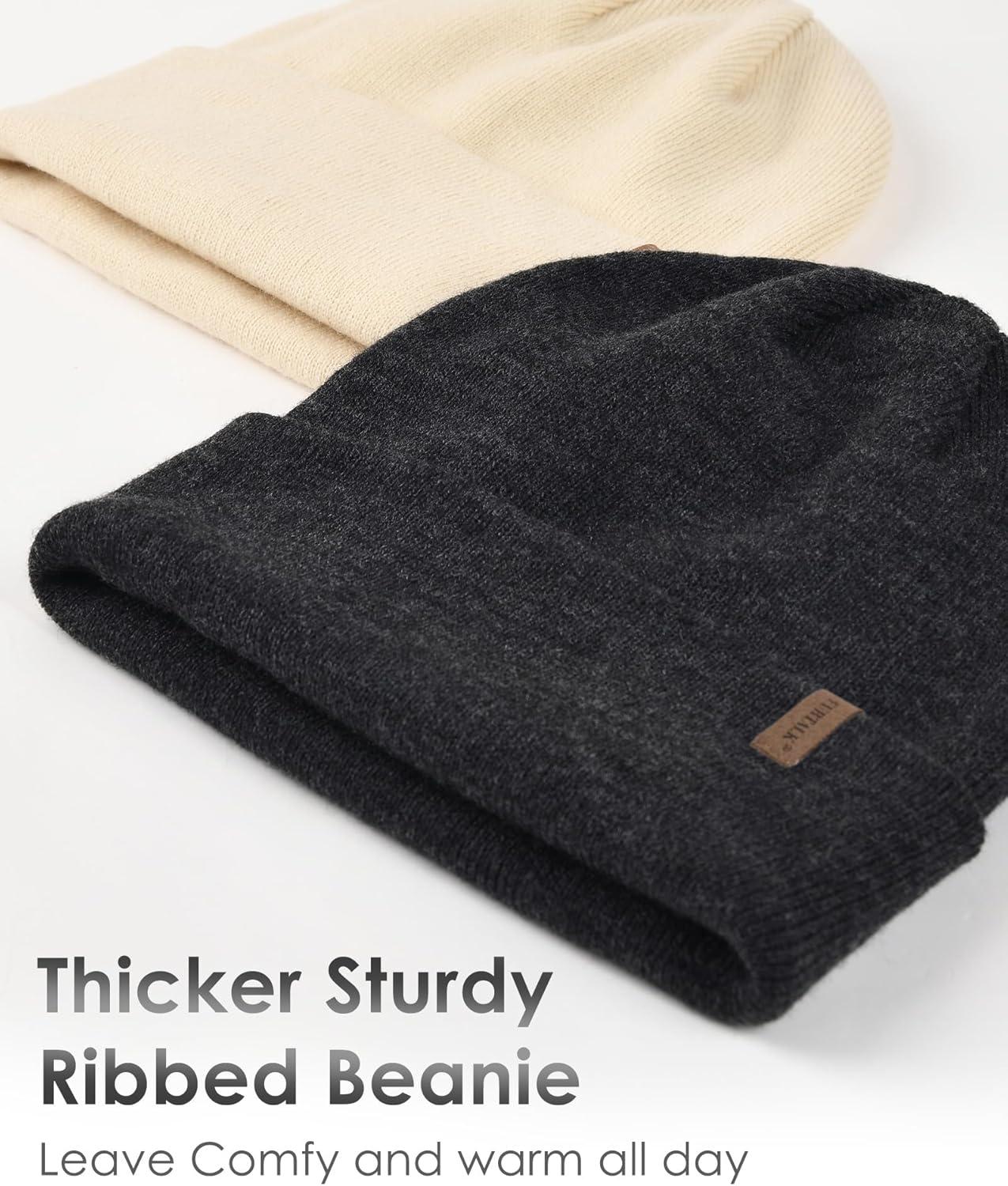 FURTALK Beanie for Men Women Cuffed Thick Knitted Unisex Winter Hat Beanies Skull Cap(Khaki)