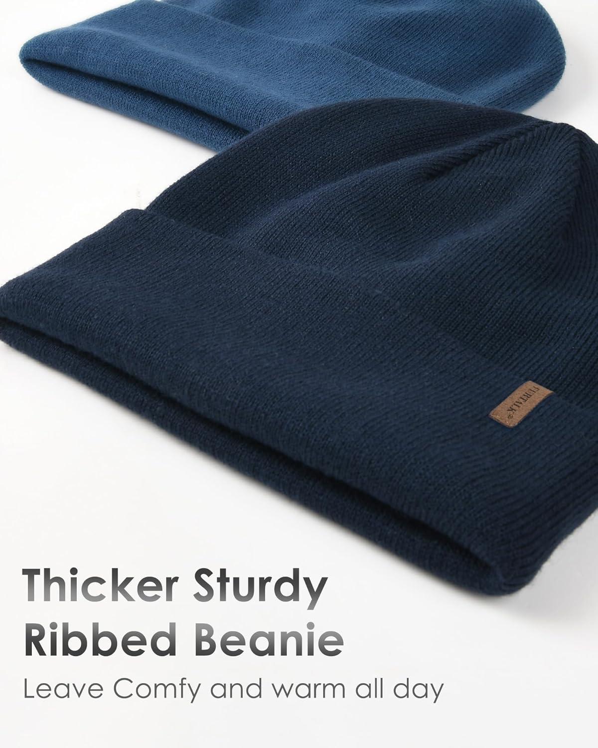 FURTALK Beanie for Men Women Cuffed Thick Knitted Unisex Winter Hat Beanies Skull Cap(Navy)