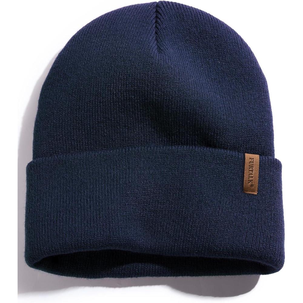 imageFURTALK Beanie for Men Women Cuffed Thick Knitted Unisex Winter Hat Beanies Skull CapNavy