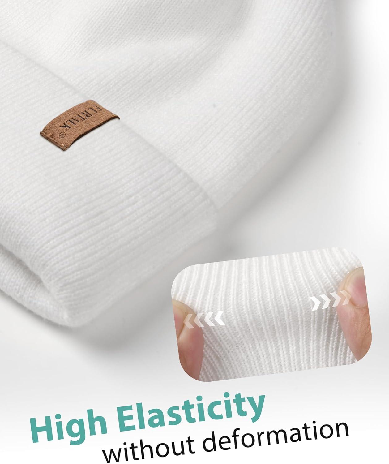 FURTALK Beanie for Men Women Cuffed Thick Knitted Unisex Winter Hat Beanies Skull Cap(White)