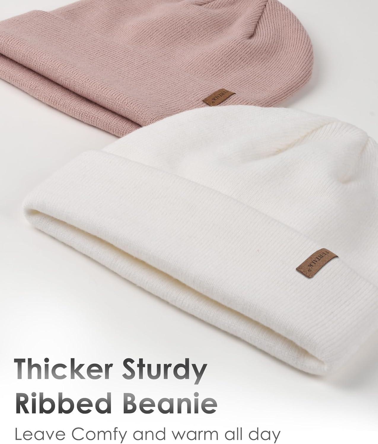 imageFURTALK Beanie for Men Women Cuffed Thick Knitted Unisex Winter Hat Beanies Skull CapWhite