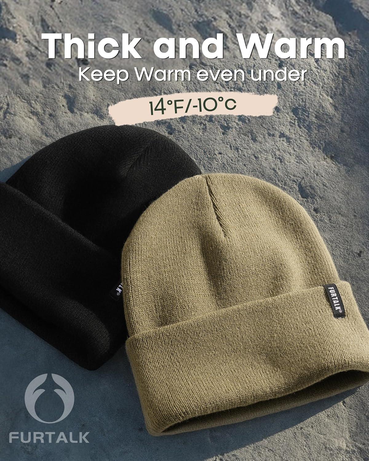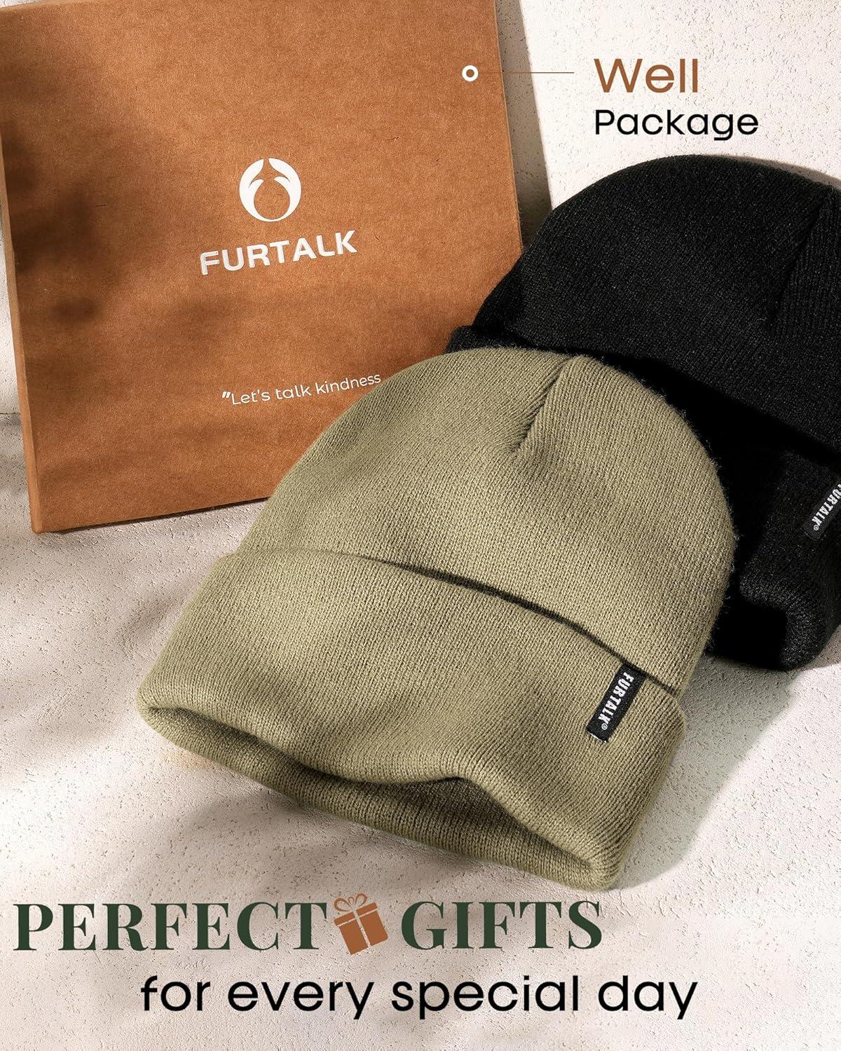 FURTALK Beanie Hat for Women Men Winter Hat Womens Cuffed Beanies Knit Skull Cap Warm Ski Hats(Black+olive)