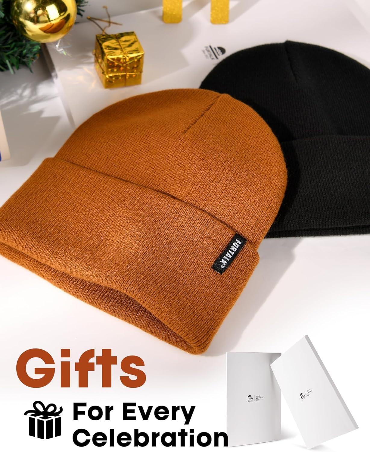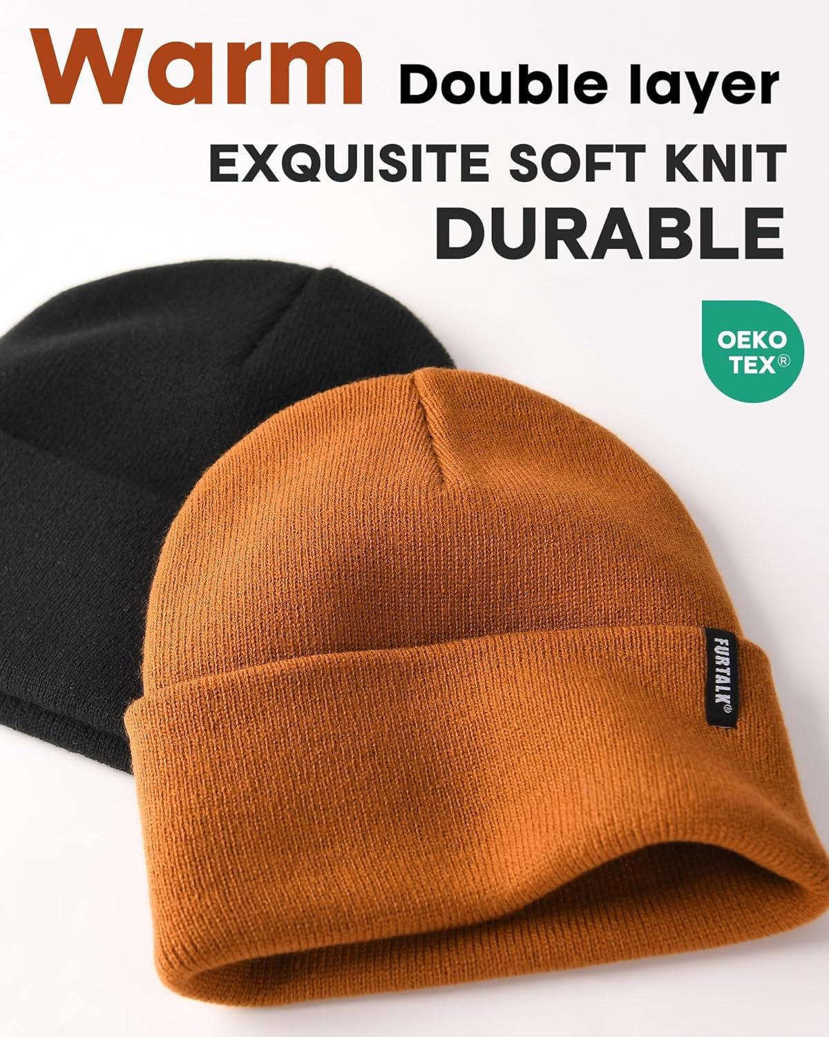 FURTALK Beanie Hat for Women Men Winter Hat Womens Cuffed Beanies Knit Skull Cap Warm Ski Hats(Black+olive)