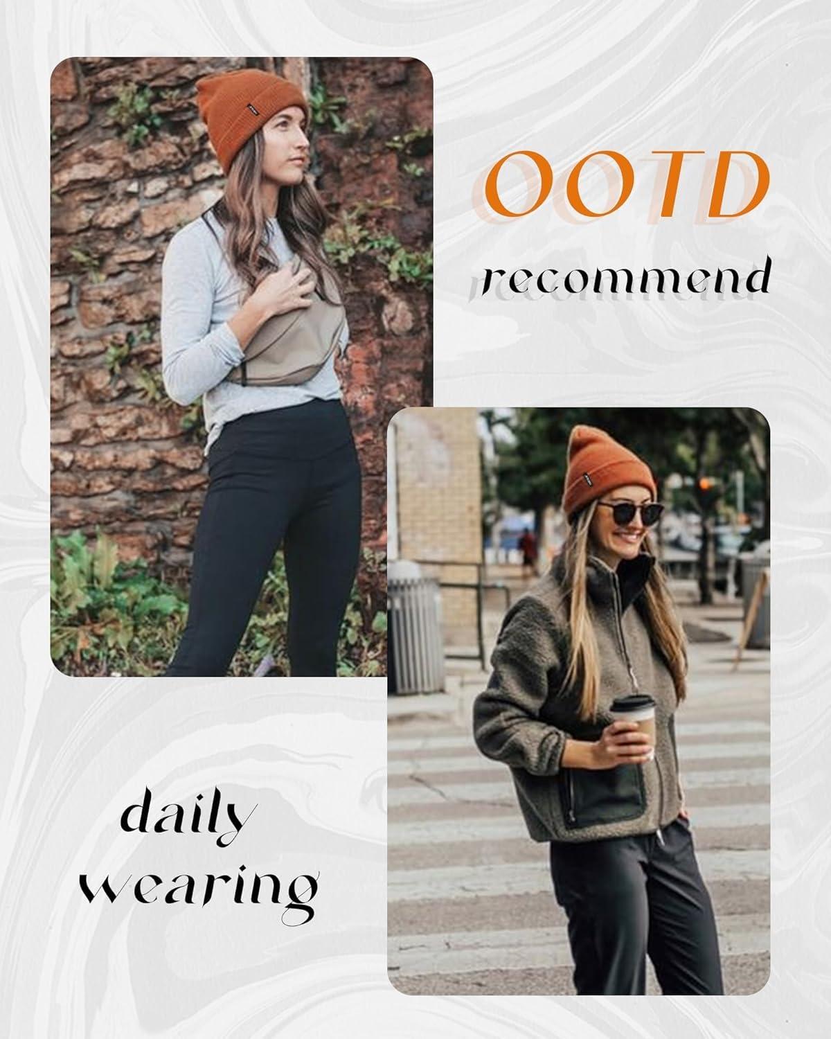 FURTALK Beanie Hat for Women Men Winter Hat Womens Cuffed Beanies Knit Skull Cap Warm Ski Hats(Dark Orange Mixed)