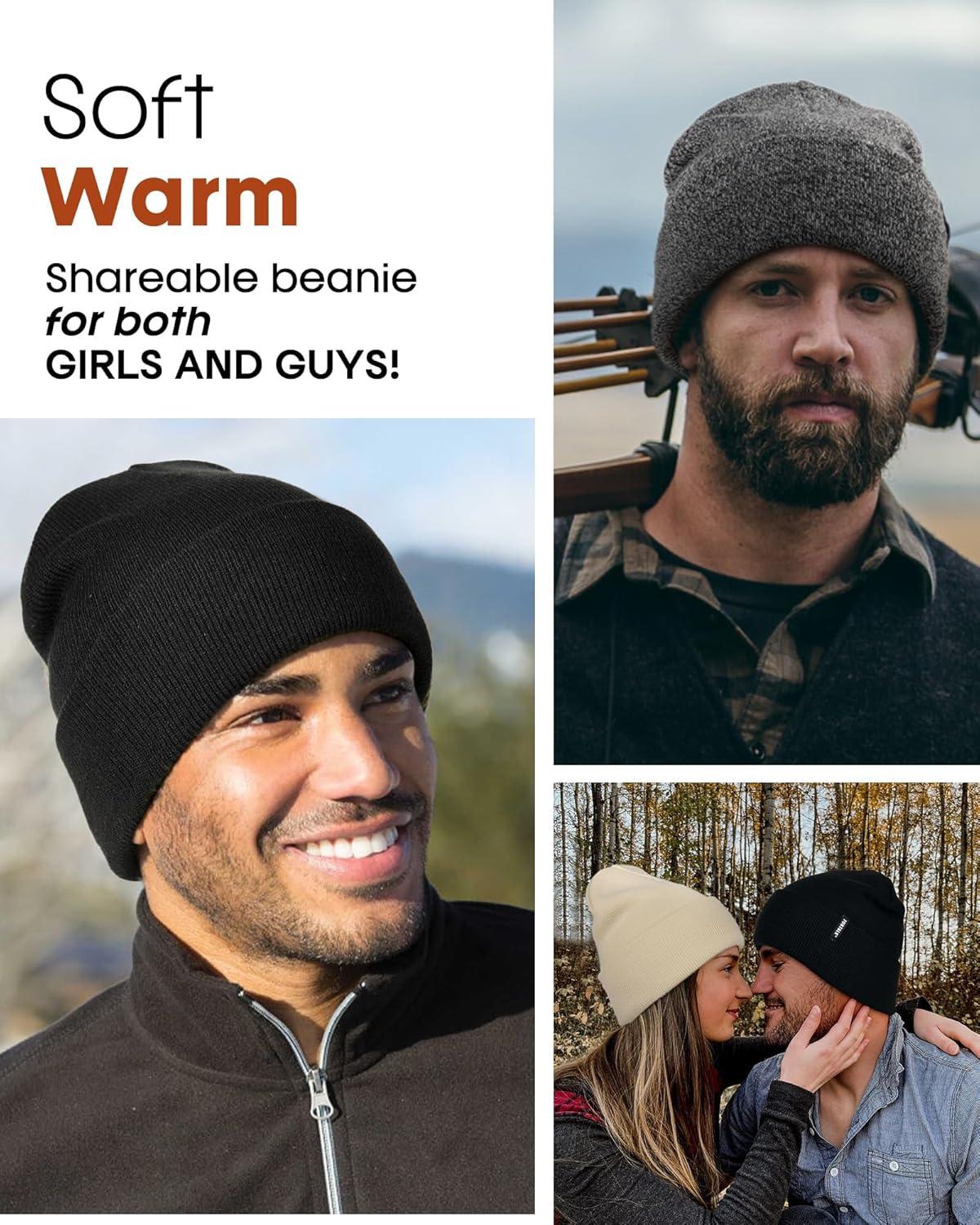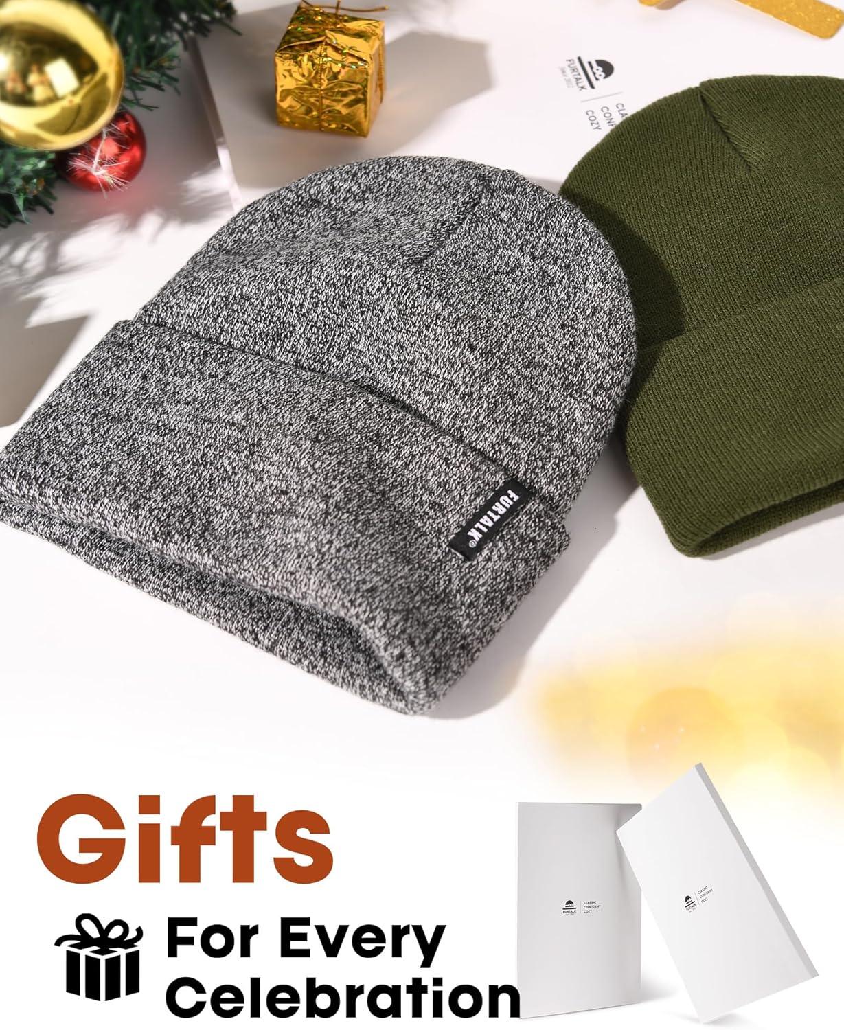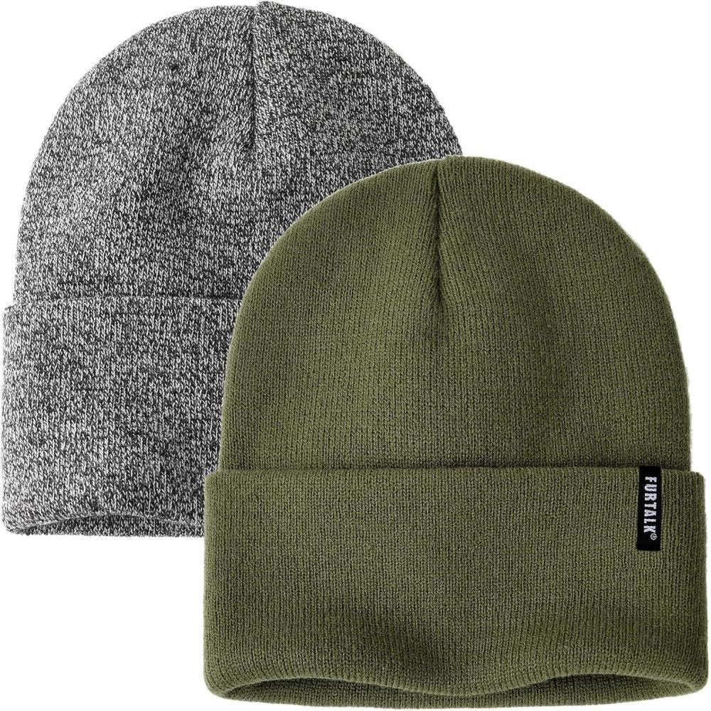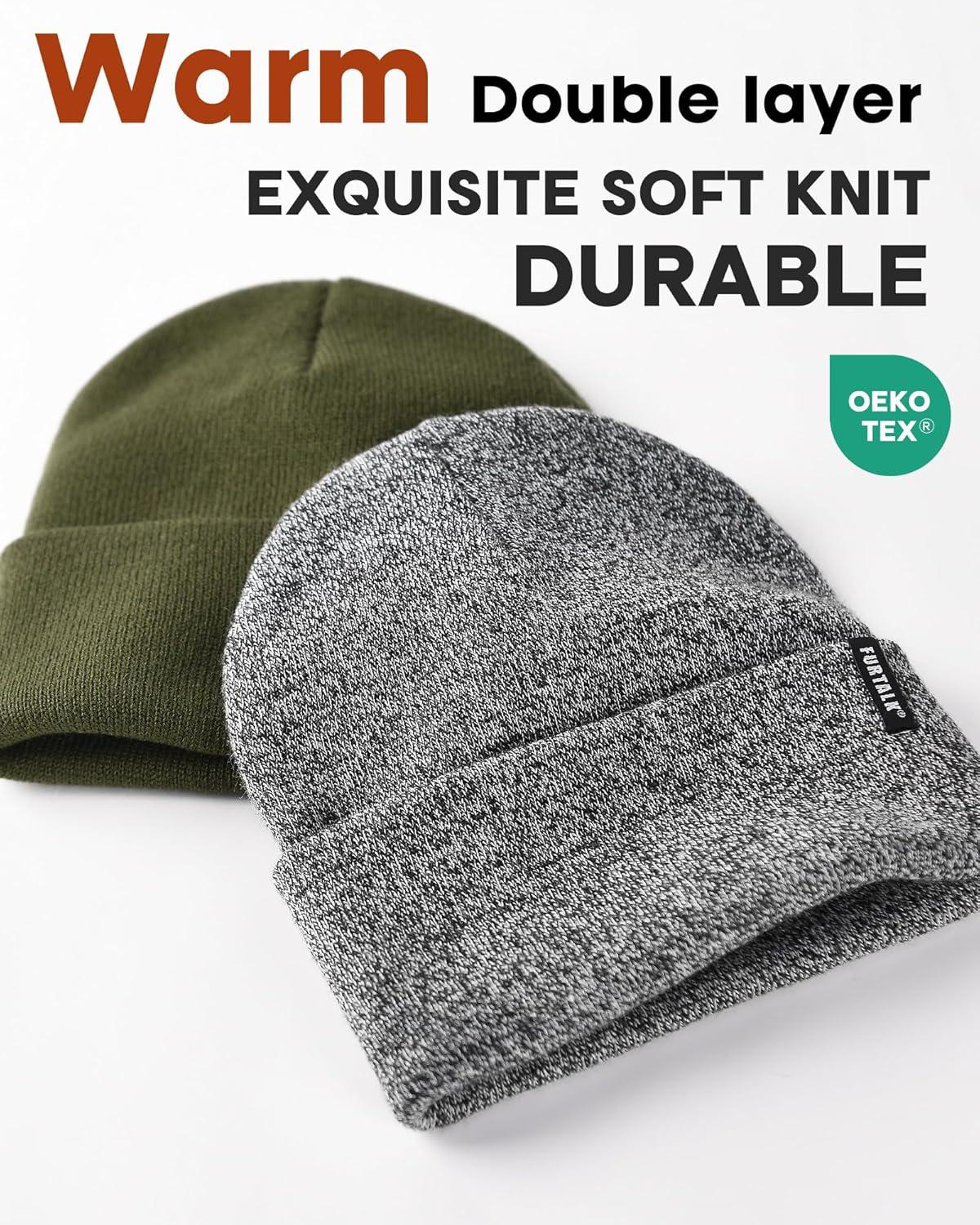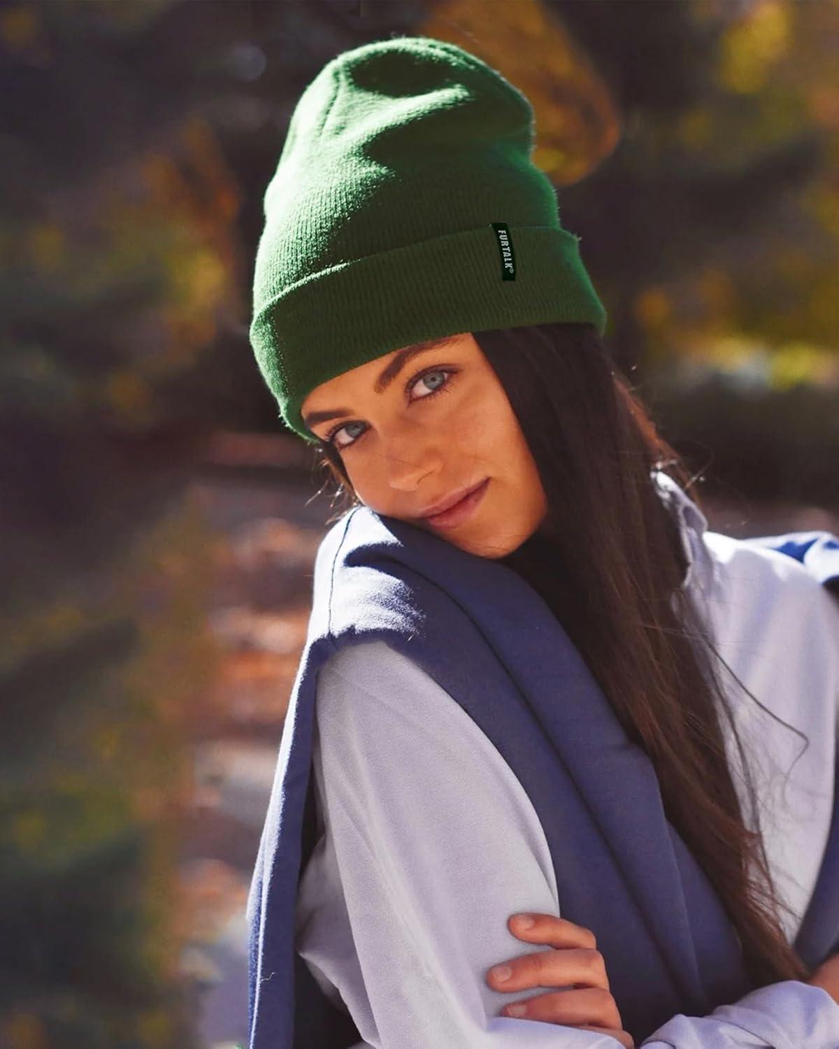 FURTALK Beanie Hat for Women Men Winter Hat Womens Cuffed Beanies Knit Skull Cap Warm Ski Hats(Pine Green+mixed Black)