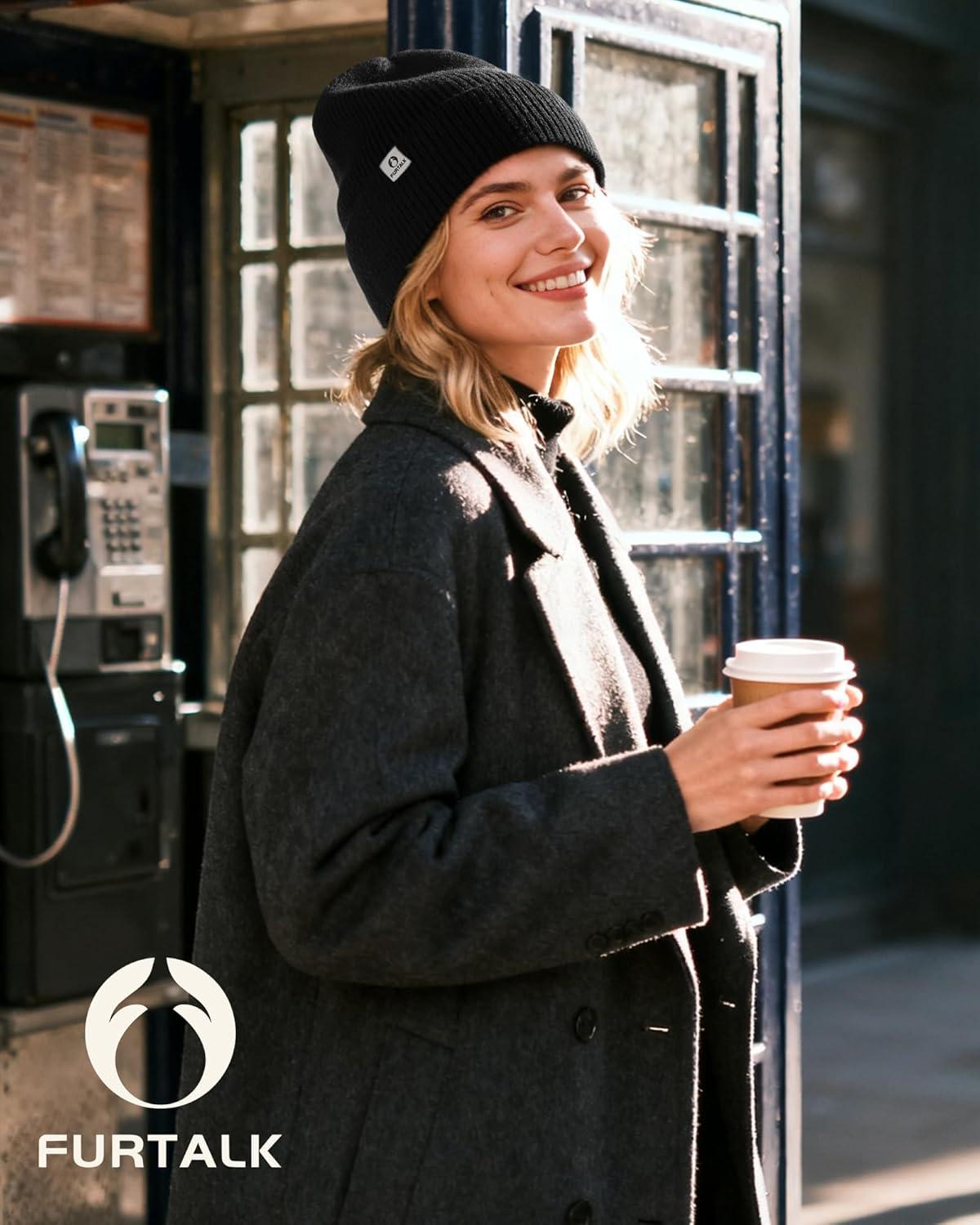 FURTALK Slouchy Beanie for Men Women Soft Knit Stretchy Skull Cap Stylish & Warm(Black)