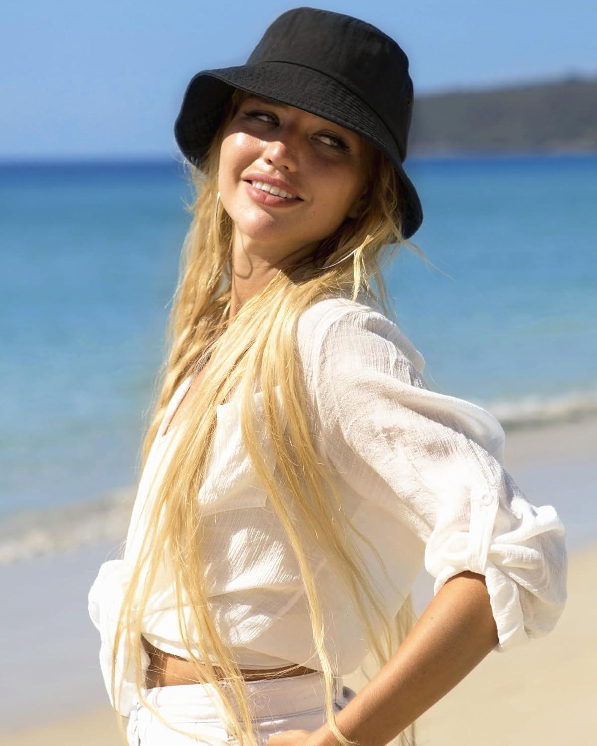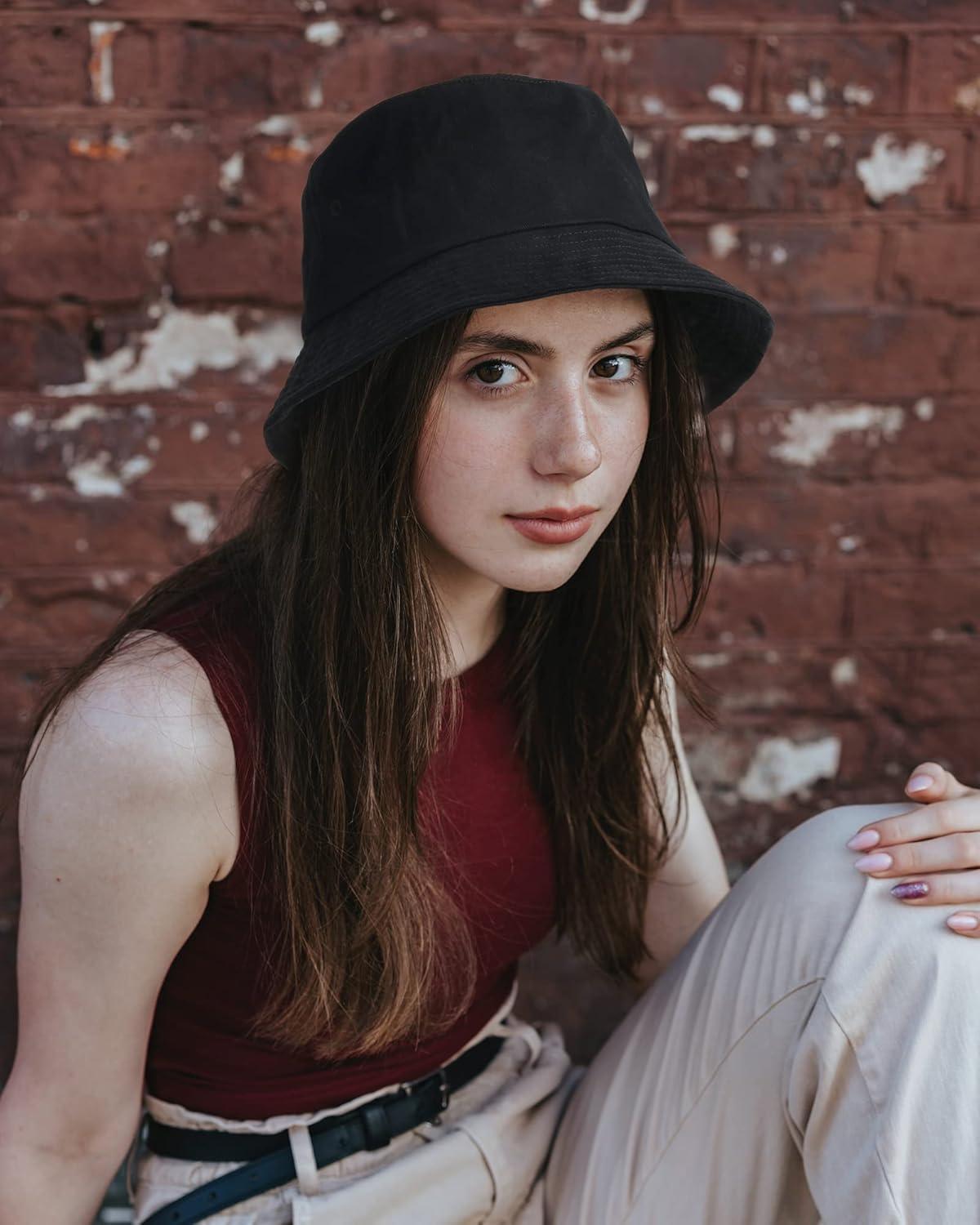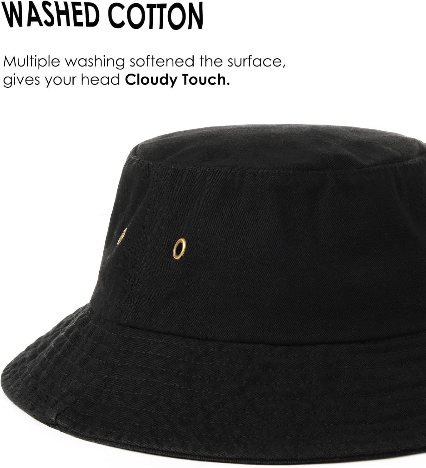 FURTALK Bucket Hats for Women Washed Cotton Packable Summer Beach Sun Hats Bucket Hat with Strings for Travel(Black)