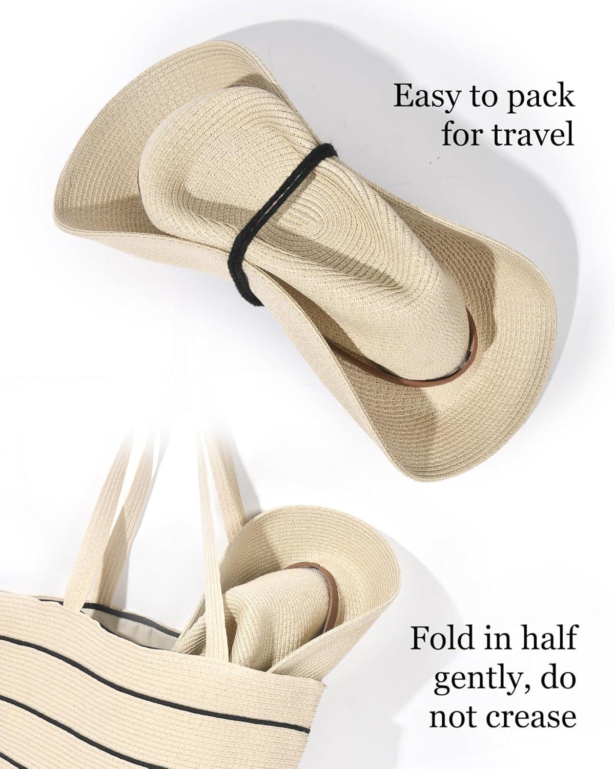 FURTALK Straw Sun Visor Hats for Women Summer Beach Sun Hat Packable UPF 80 Sun Protection Travel Hat with Big Tie