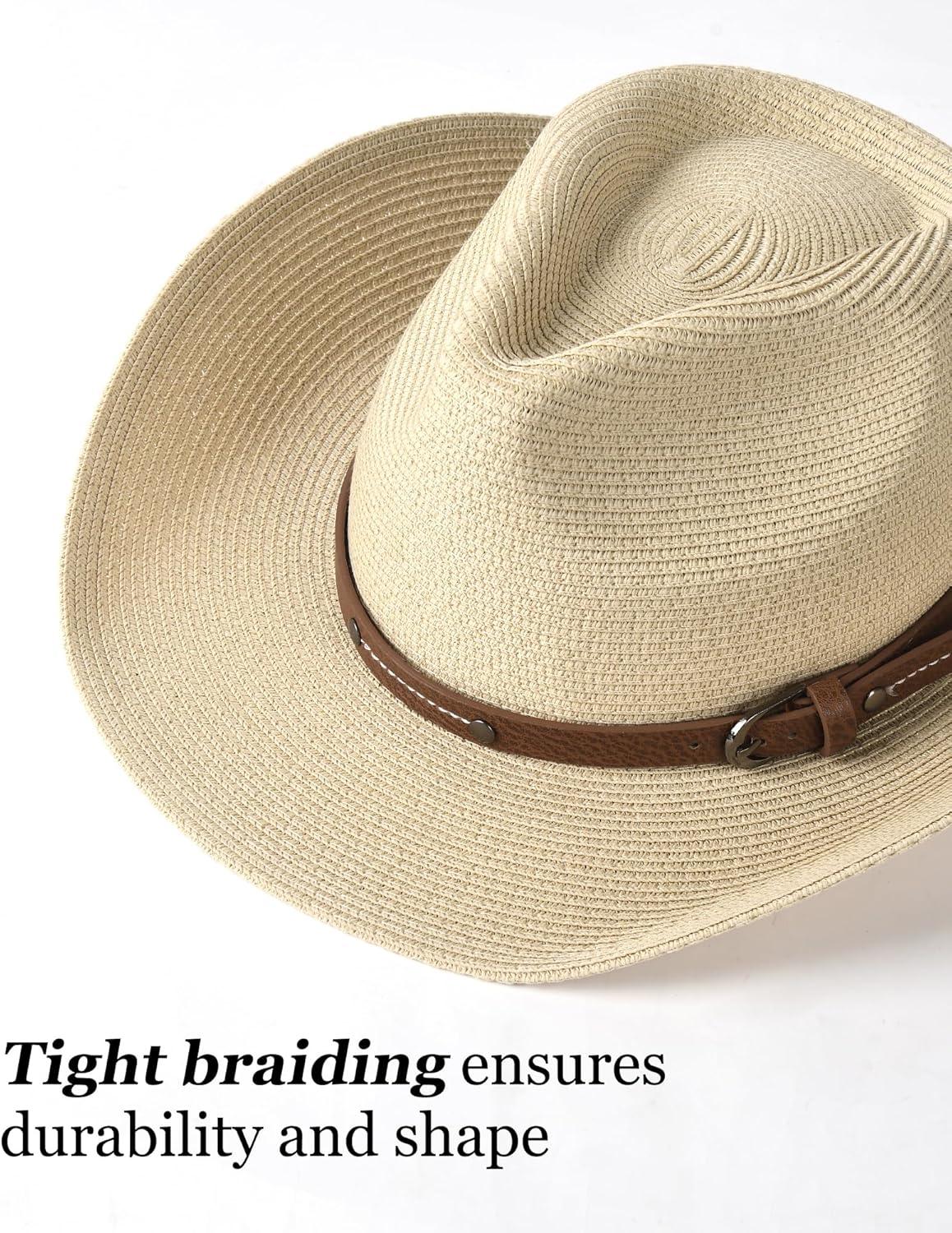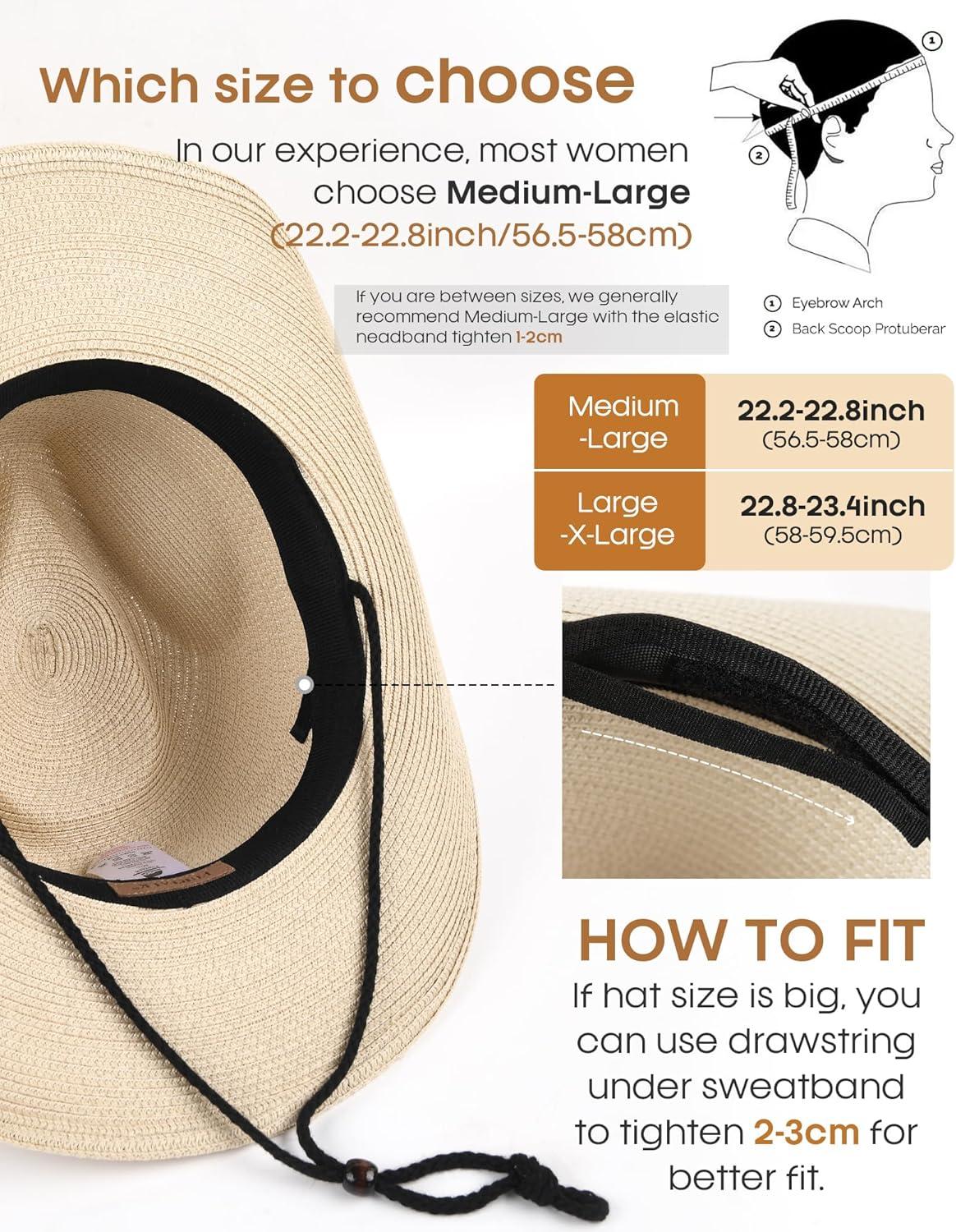 FURTALK Cowboy Sun Hats for Women Men Western Cowgirl Hats with Wind Lanyard UPF 80+ Beach Hat(Beige)