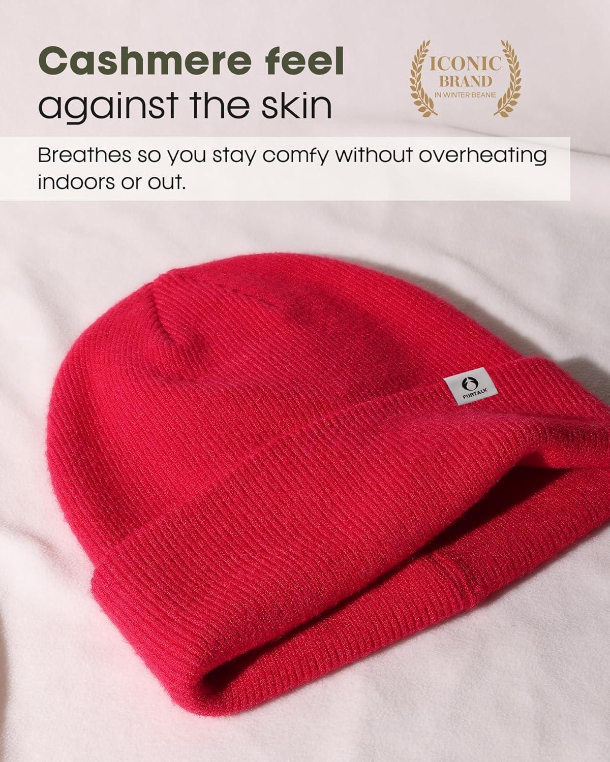 imageFURTALK DoubleLayer Beanie for Men Women Ultra Soft Stretchy Knit Winter Hat Unisex Cold Weather Beanie HatRed