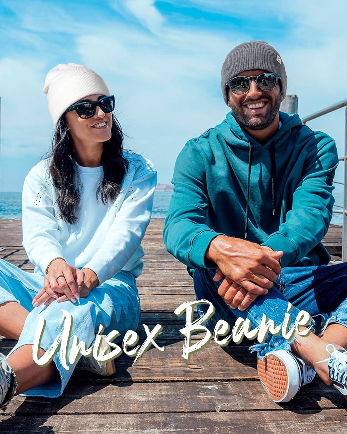 FURTALK Double-Layer Beanie for Men Women, Ultra Soft Stretchy Knit Winter Hat Unisex Cold Weather Beanie Hat(White)