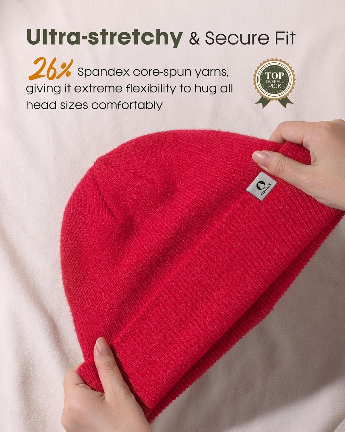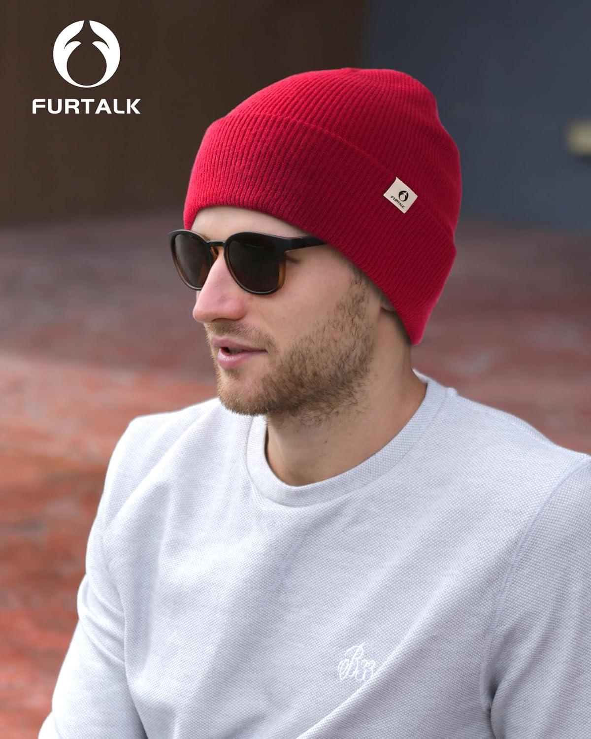FURTALK Double-Layer Beanie for Men Women, Ultra Soft Stretchy Knit Winter Hat Unisex Cold Weather Beanie Hat(Red)