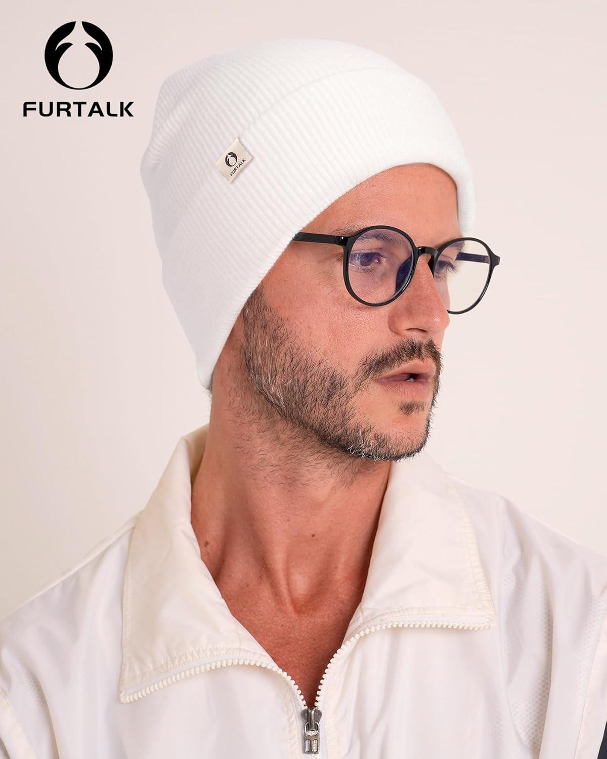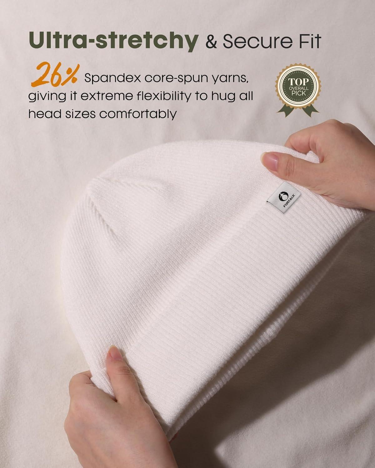 FURTALK Double-Layer Beanie for Men Women, Ultra Soft Stretchy Knit Winter Hat Unisex Cold Weather Beanie Hat(White)