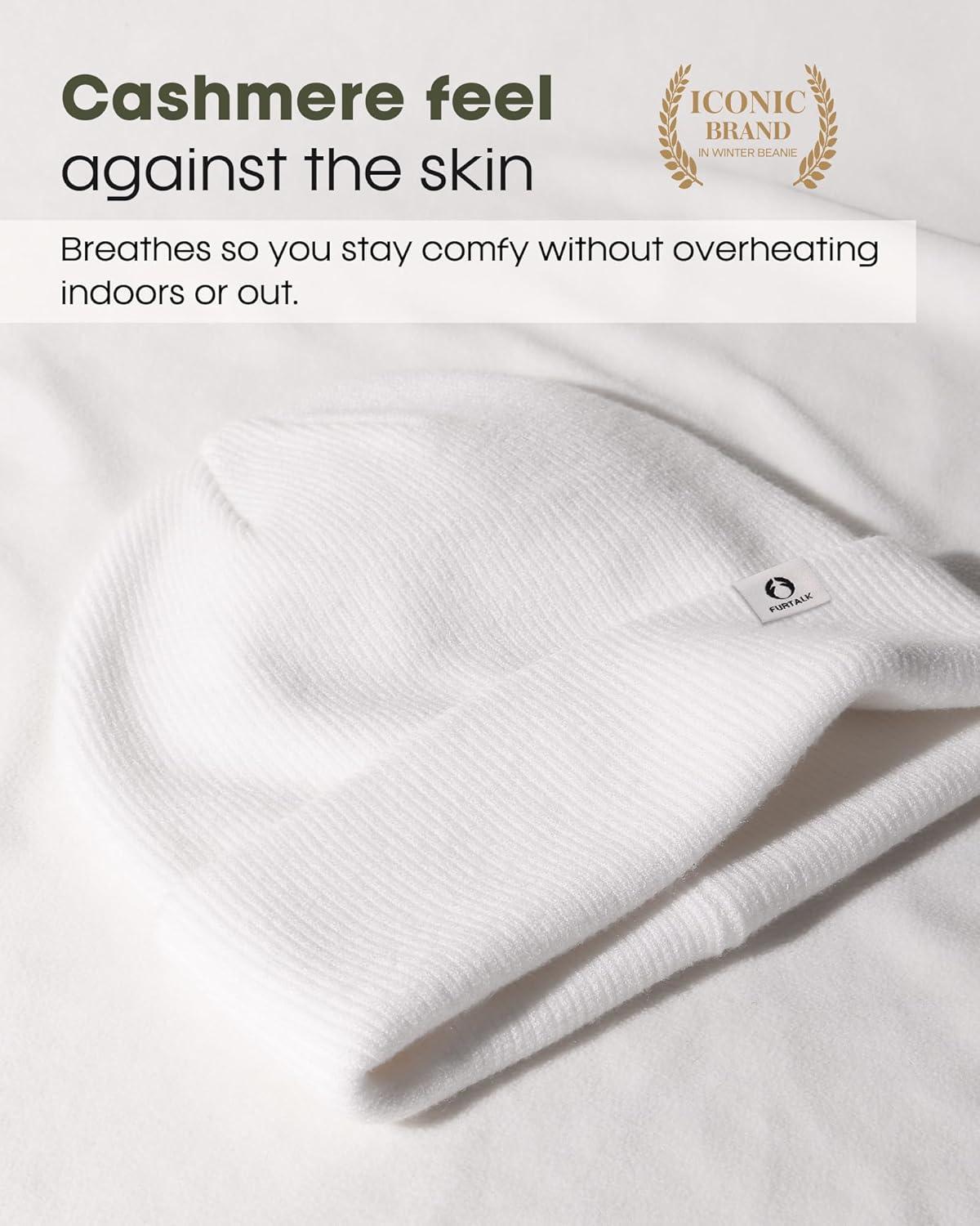 imageFURTALK DoubleLayer Beanie for Men Women Ultra Soft Stretchy Knit Winter Hat Unisex Cold Weather Beanie HatWhite