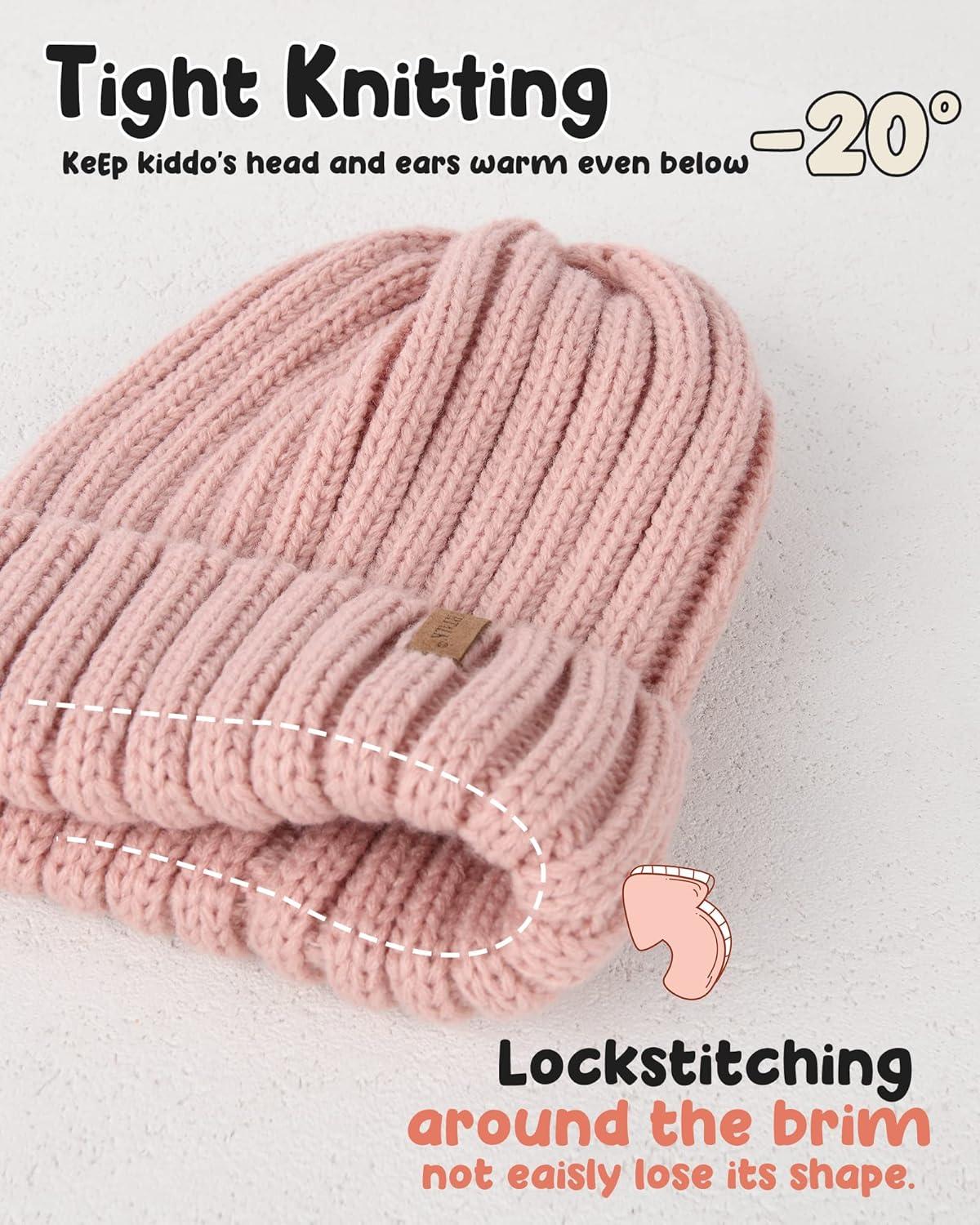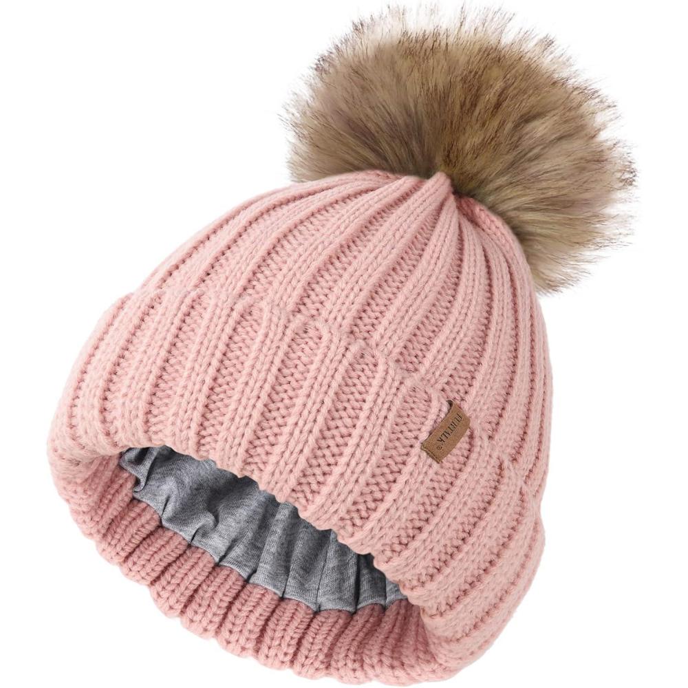 FURTALK Kids Winter Hat Toddler Knitted Beanie with Faux Fur Pom Poms for Baby Girls Boys(Light Pink)