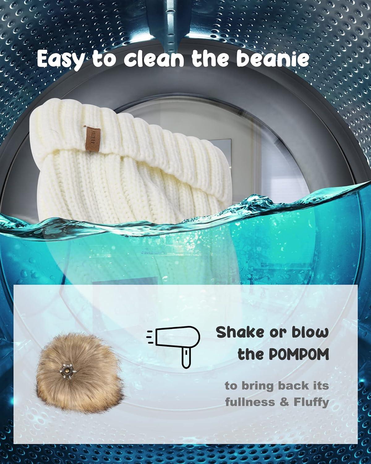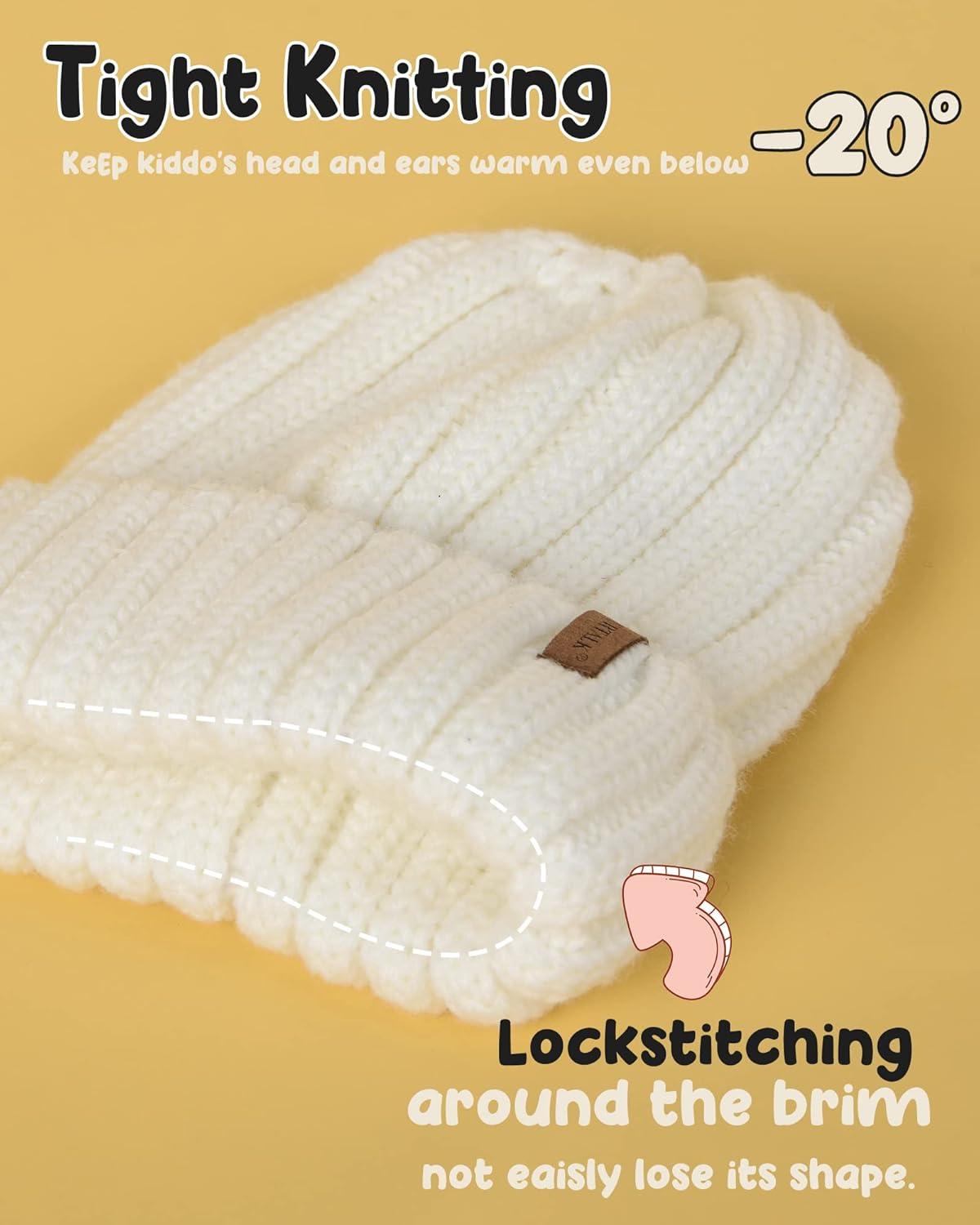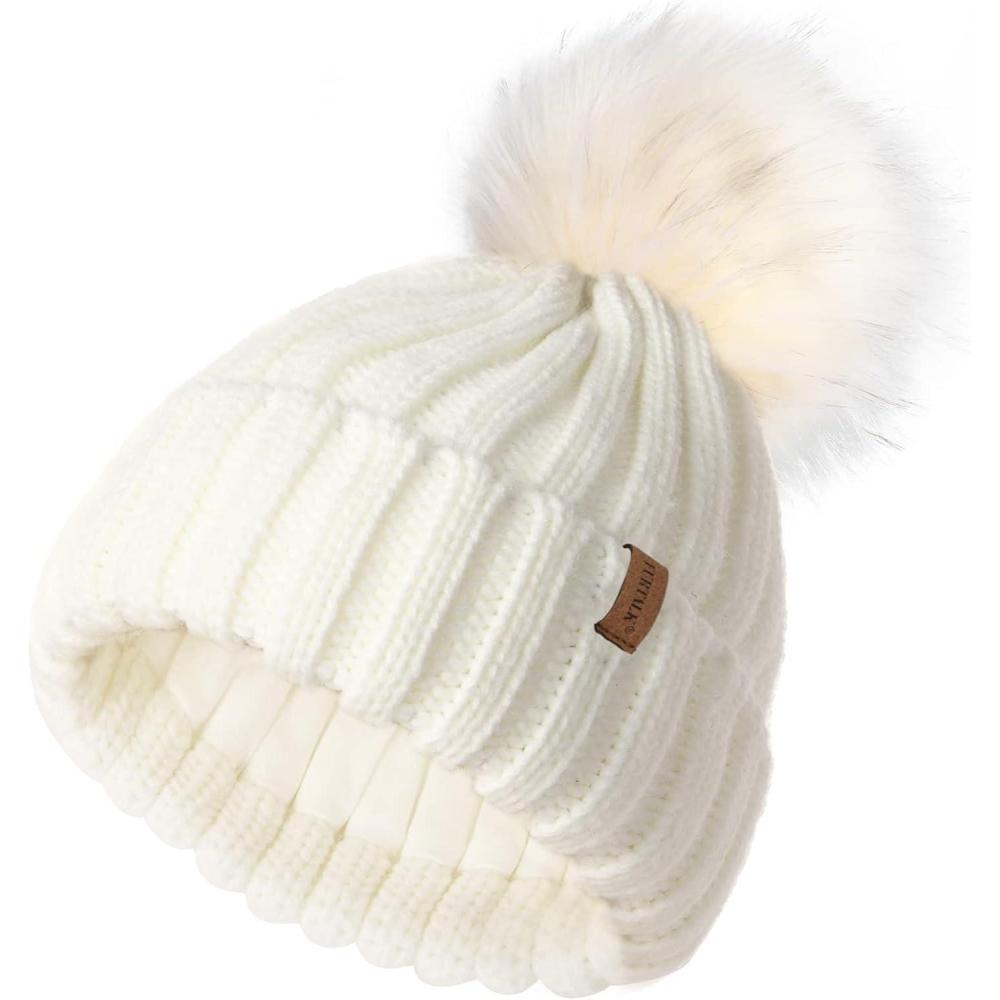 FURTALK Kids Winter Hat Toddler Knitted Beanie with Faux Fur Pom Poms for Baby Girls Boys(White With White Pom)