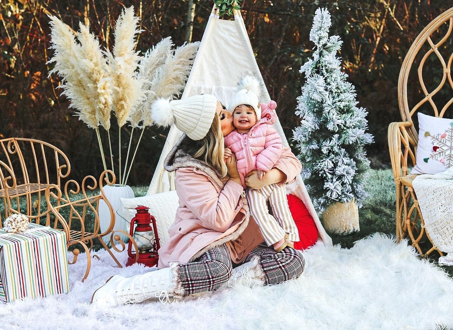 imageFURTALK Kids Winter Hat Toddler Knitted Beanie with Faux Fur Pom Poms for Baby Girls BoysRose Red