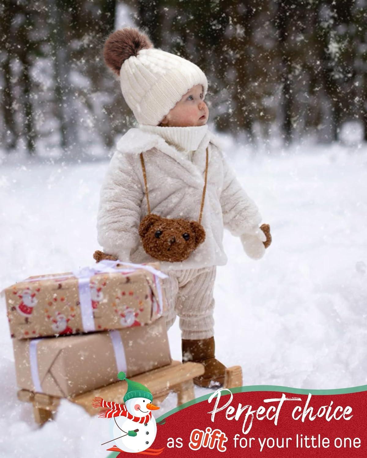 FURTALK Kids Winter Hat Toddler Knitted Beanie with Faux Fur Pom Poms for Baby Girls Boys(White)