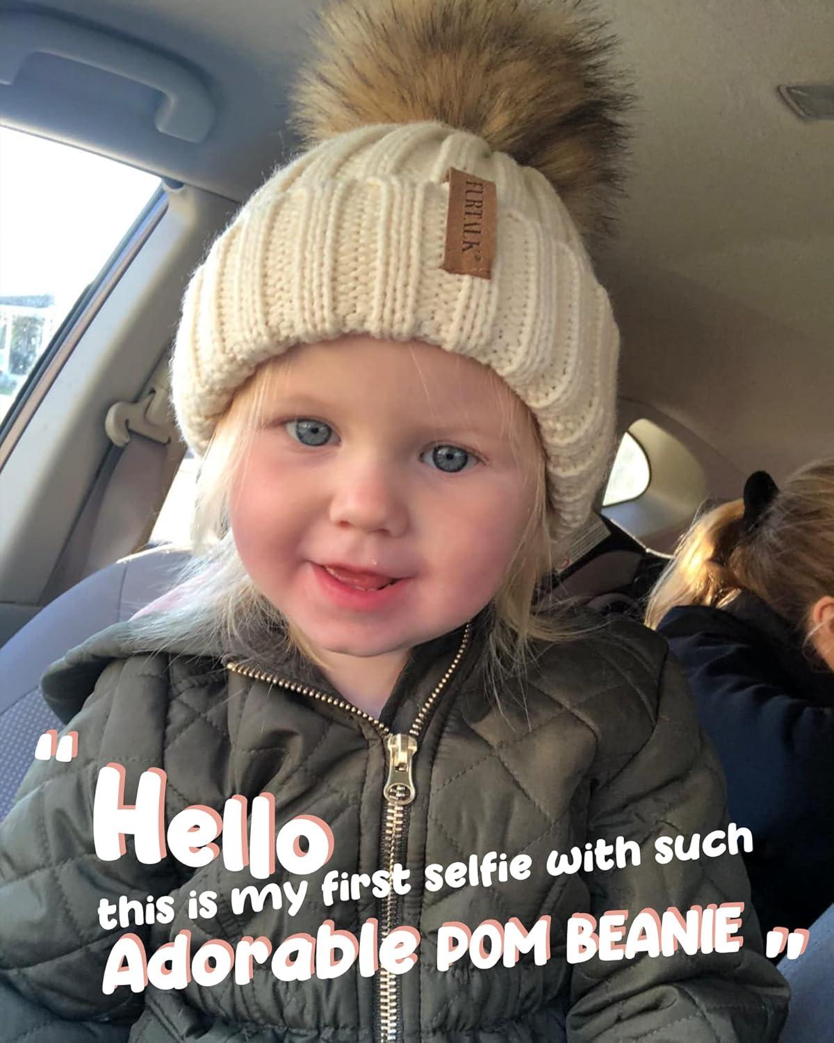 imageFURTALK Kids Winter Hat Toddler Knitted Beanie with Faux Fur Pom Poms for Baby Girls BoysWhite