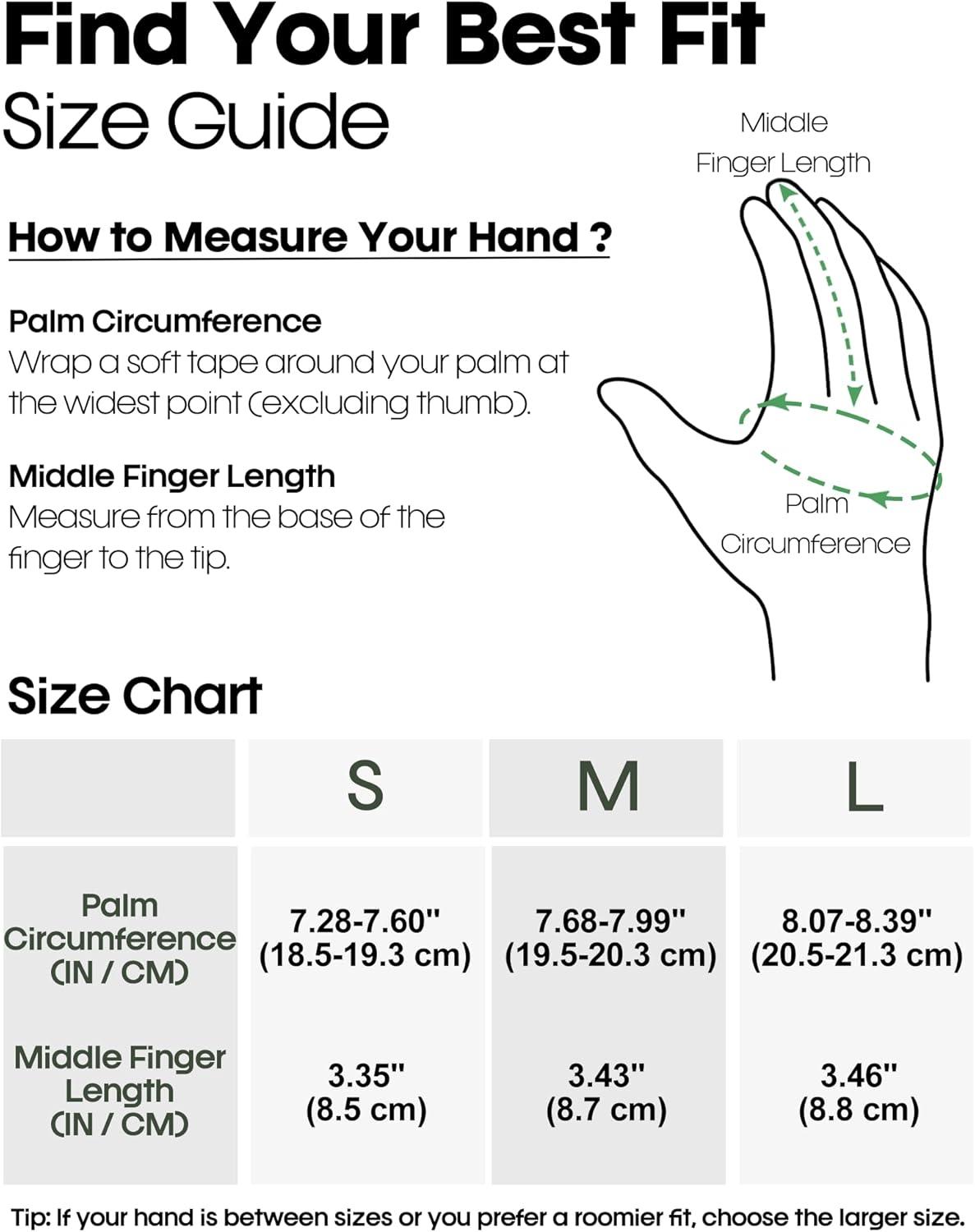SIZE GUIDANCE — Slim Fit: This glove features a slightly slimmer ergonomic fit. For best results, please measure your palm circumference and middle finger length and compare them with our size chart. If your measurements are between sizes, we recommend choosing the larger size for greater comfort.