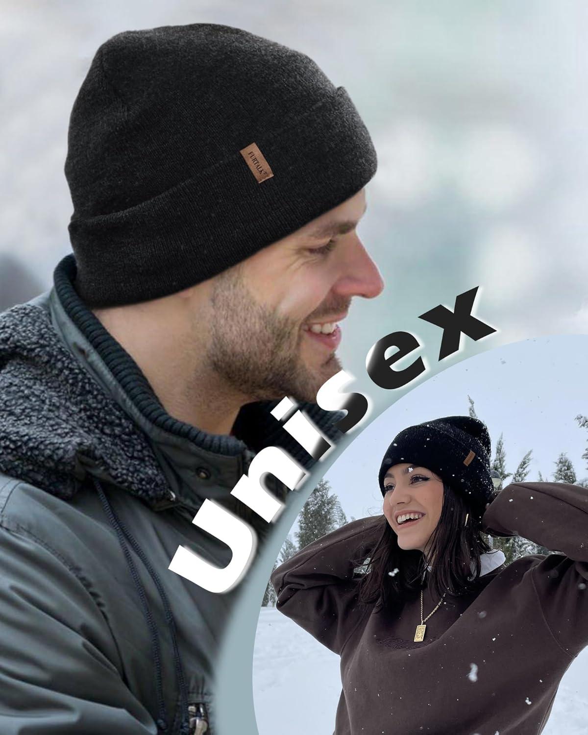 FURTALK Mens Beanie Fleece Lined Winter Hats Double Layered Stylish Knited Cuffed Plain Hat(Mix Grey)