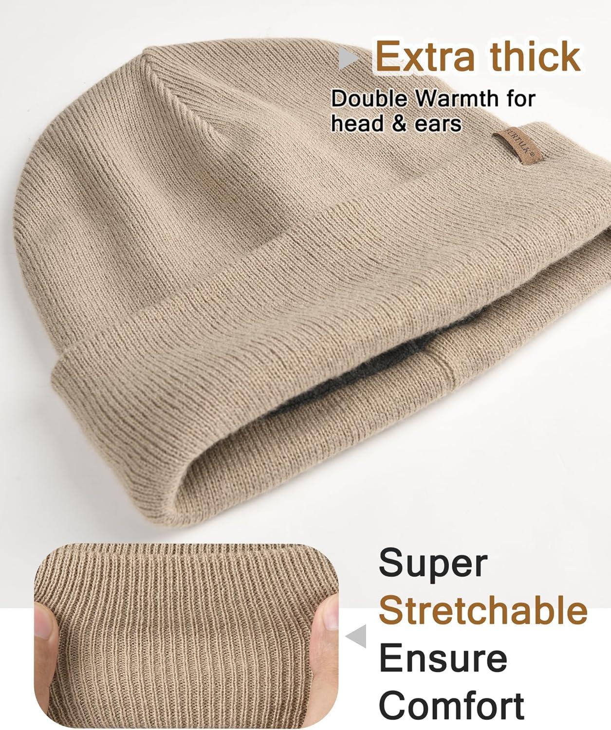 FURTALK Mens Beanie Fleece Lined Winter Hats Double Layered Stylish Knited Cuffed Plain Hat(Khaki)