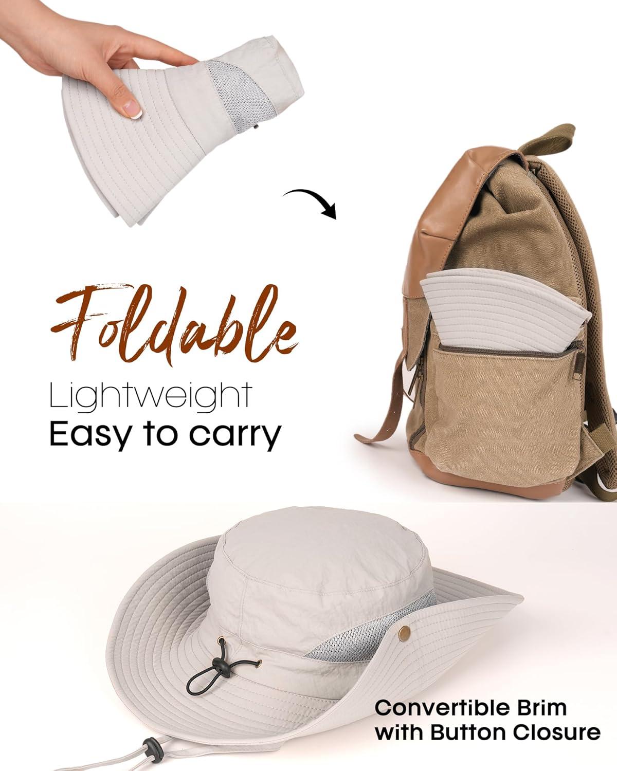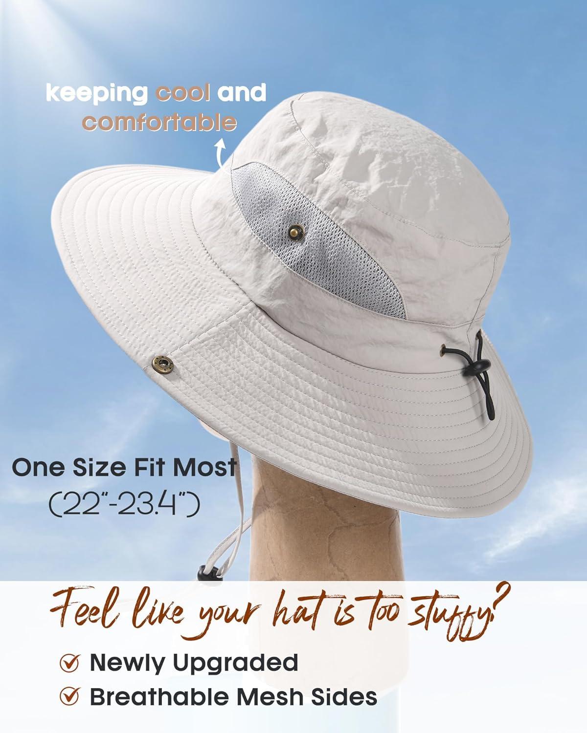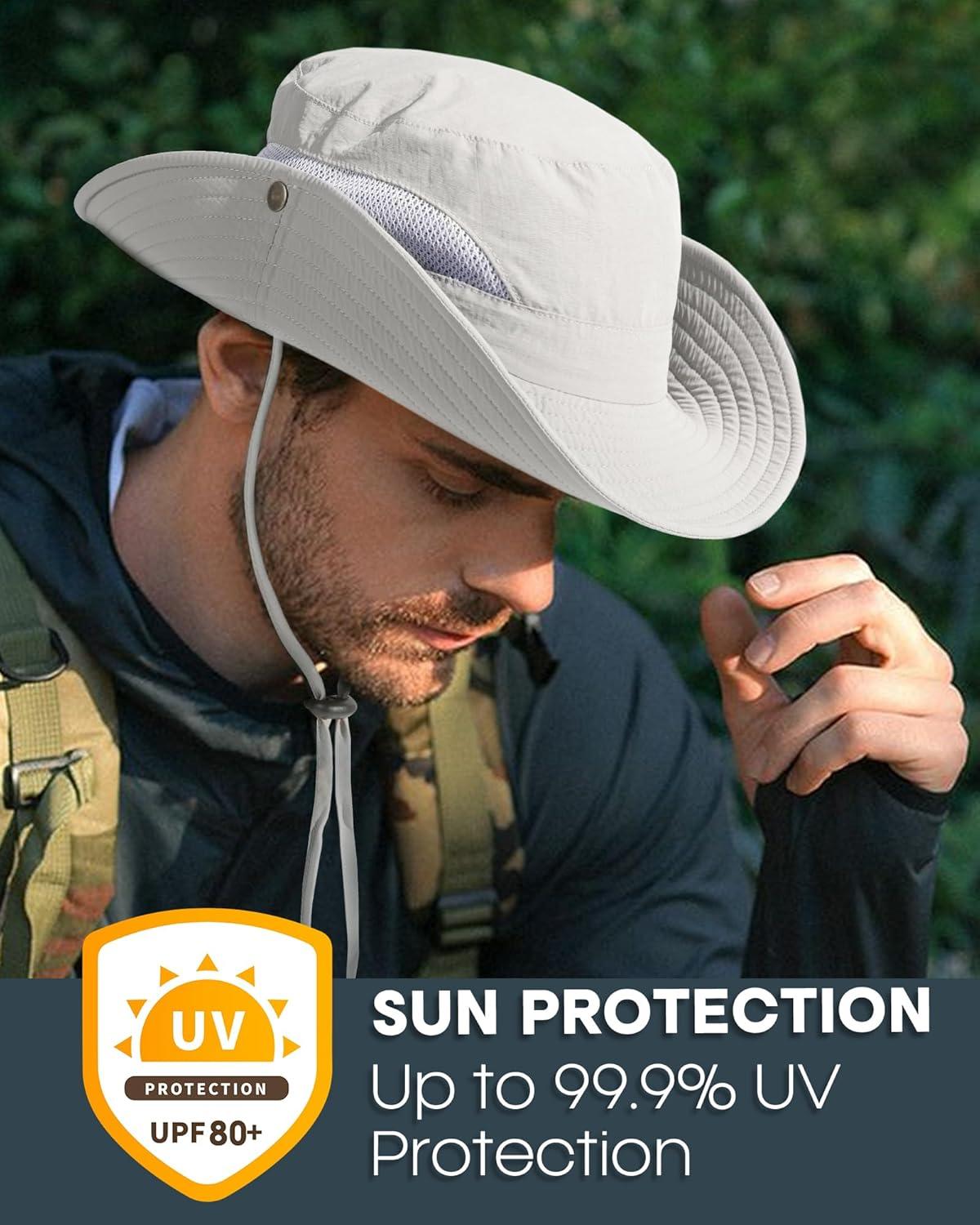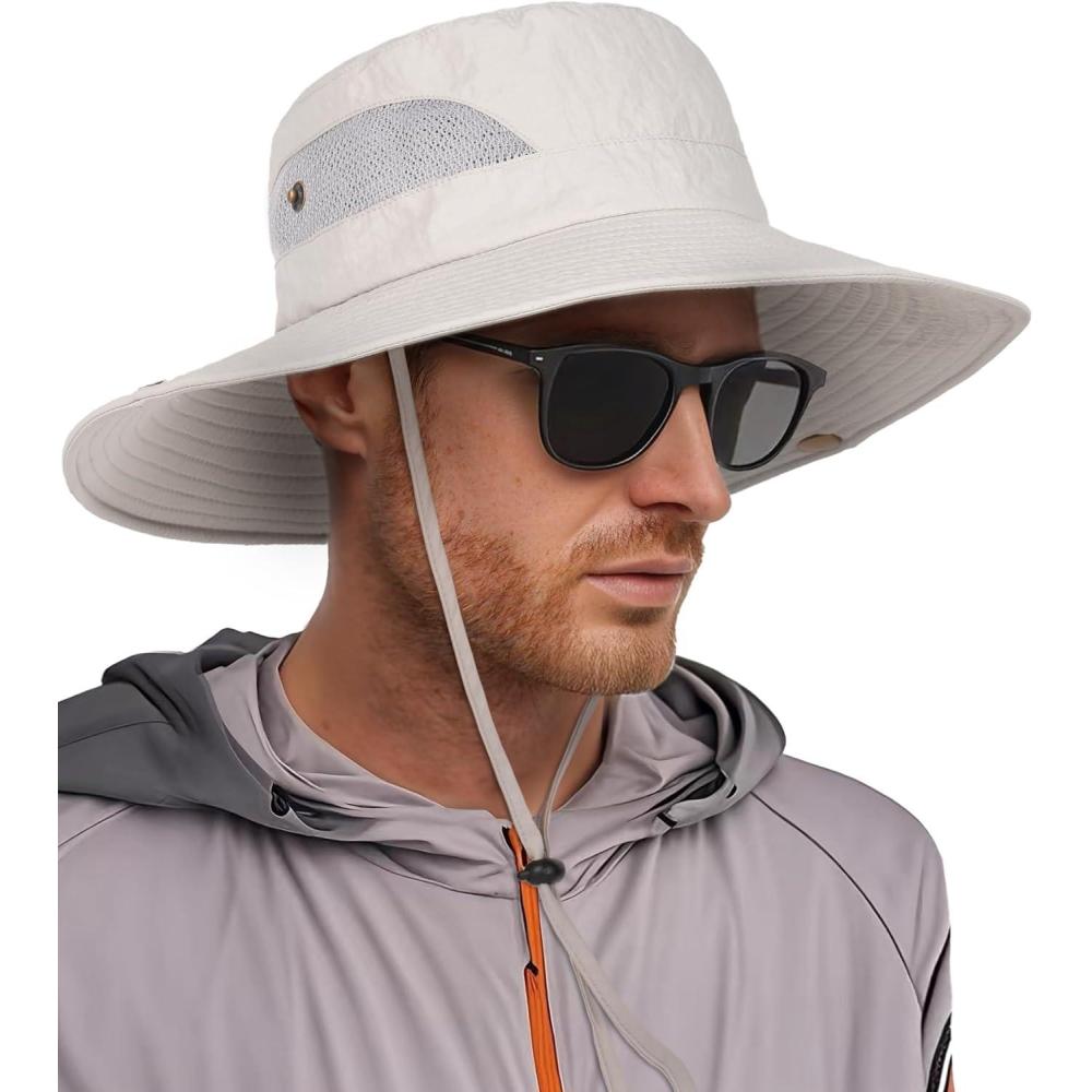 FURTALK Mens Bucket Sun Hat UPF 80+ Wide Brim Hiking Fishing Beach Outdoor Hats(Light Grey)