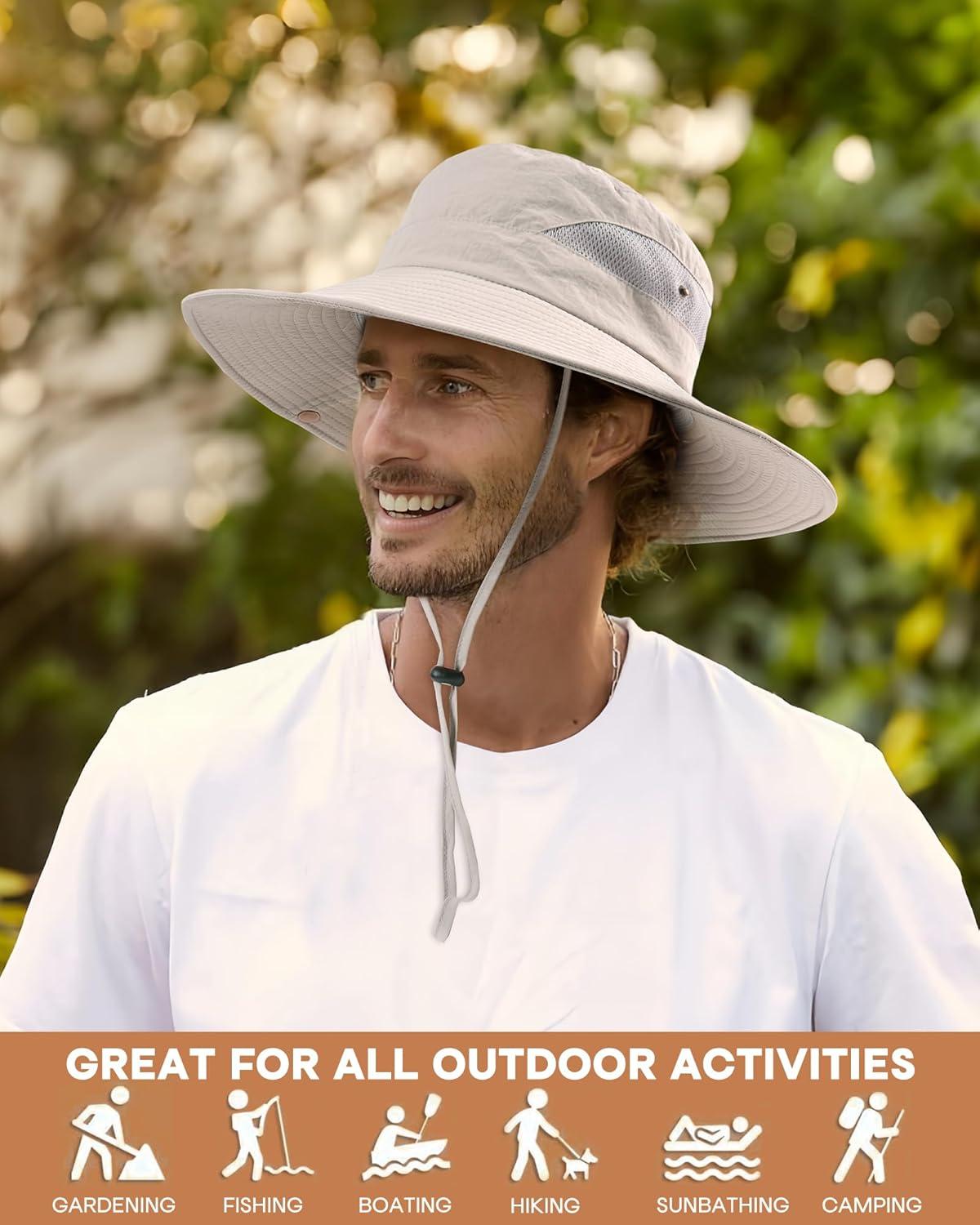 FURTALK Mens Bucket Sun Hat UPF 80+ Wide Brim Hiking Fishing Beach Outdoor Hats(Khaki)