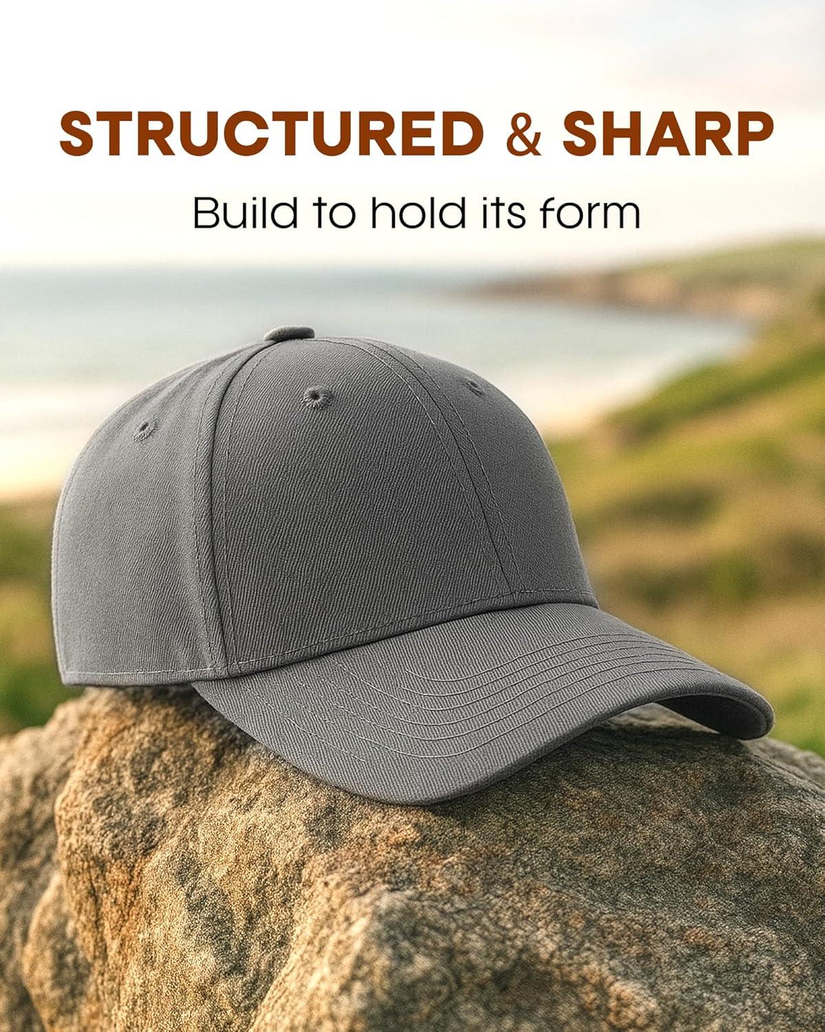 FURTALK Mens Structured Baseball Cap Adjustable Washed Cotton Golf Dad Hat Plain Classic Hats for Men(Black+grey+stone)
