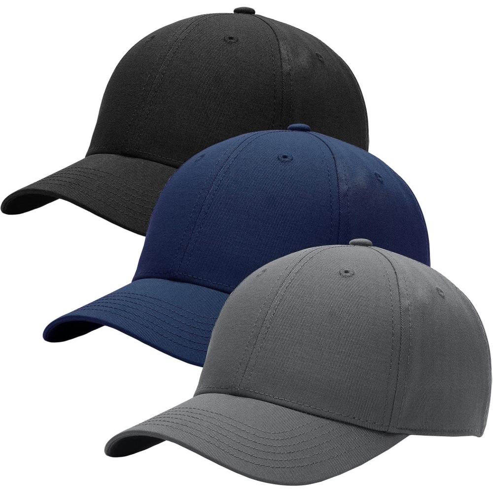 FURTALK Mens Structured Baseball Cap Adjustable Washed Cotton Golf Dad Hat Plain Classic Hats for Men(Black+grey+navy)