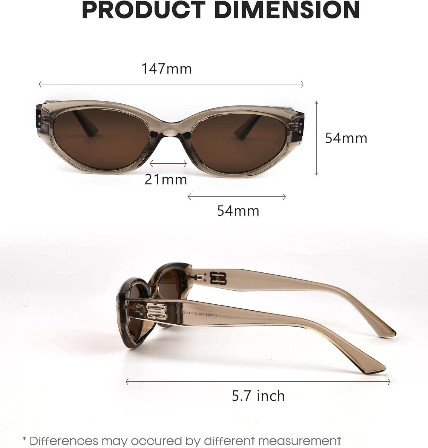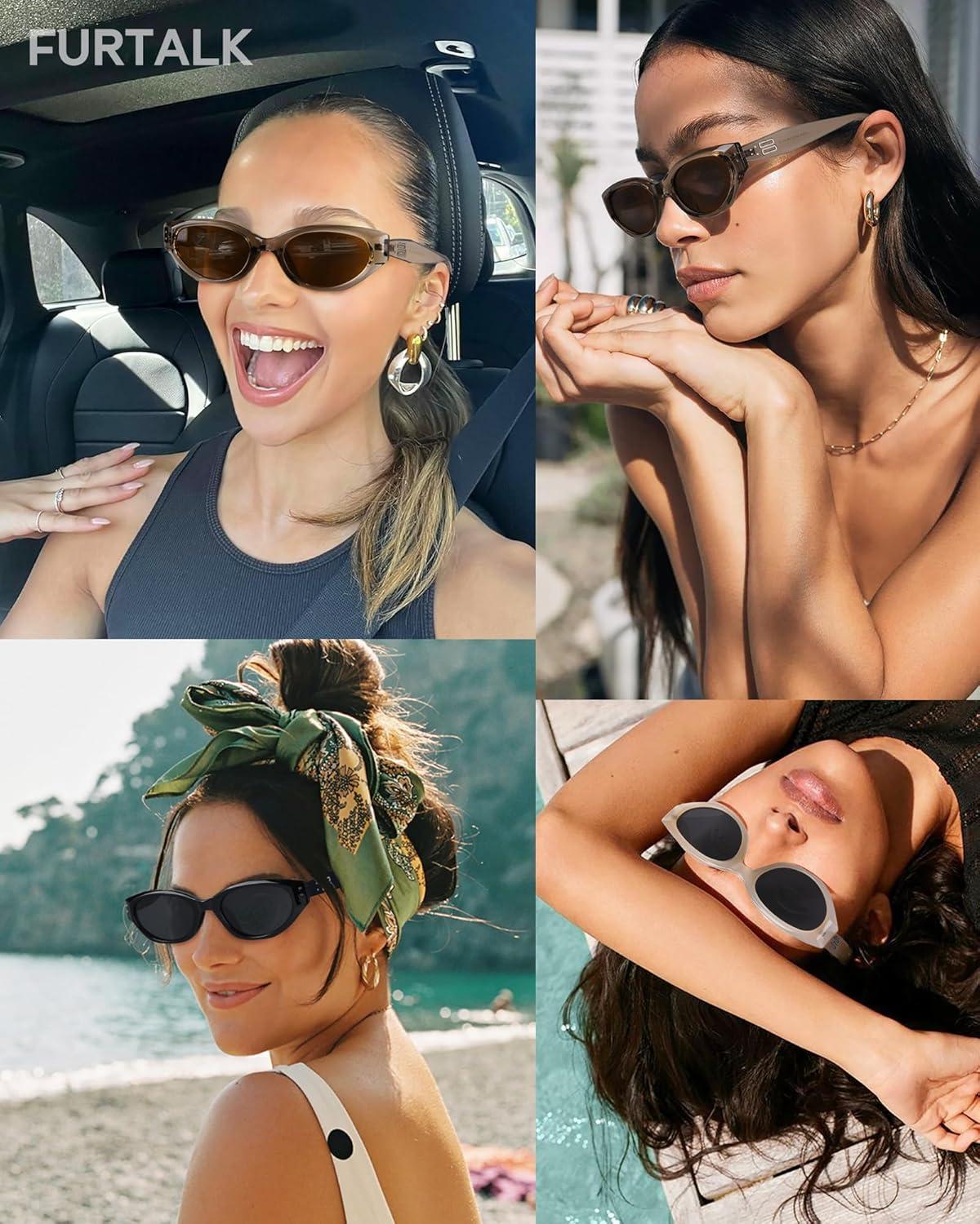 imageFURTALK Oval Cat Eye Sunglasses Vintage 90s Style Frame Polarized Lens UV Protection Brown