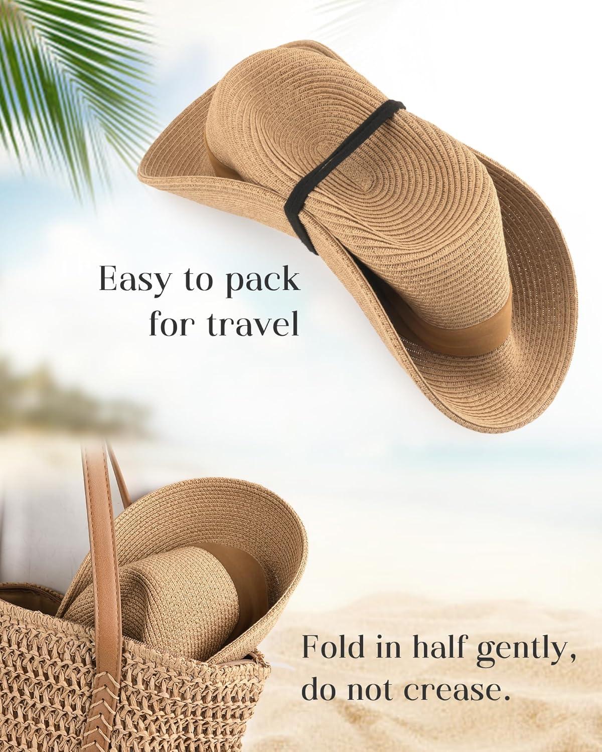 FURTALK Panama Hat Sun Hats for Women Men Wide Brim Fedora Straw Beach Hat UV UPF 80+(Brown)