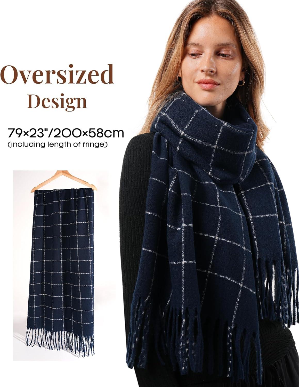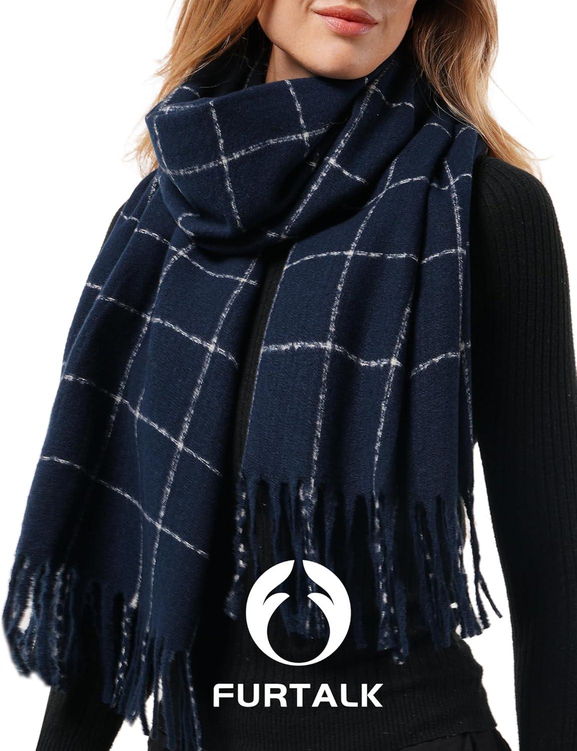 FURTALK Plaid Winter Scarf for Women Soft Cashmere Feel Shawls Wraps Warm Womens Large Chunky Scarves(Navy)