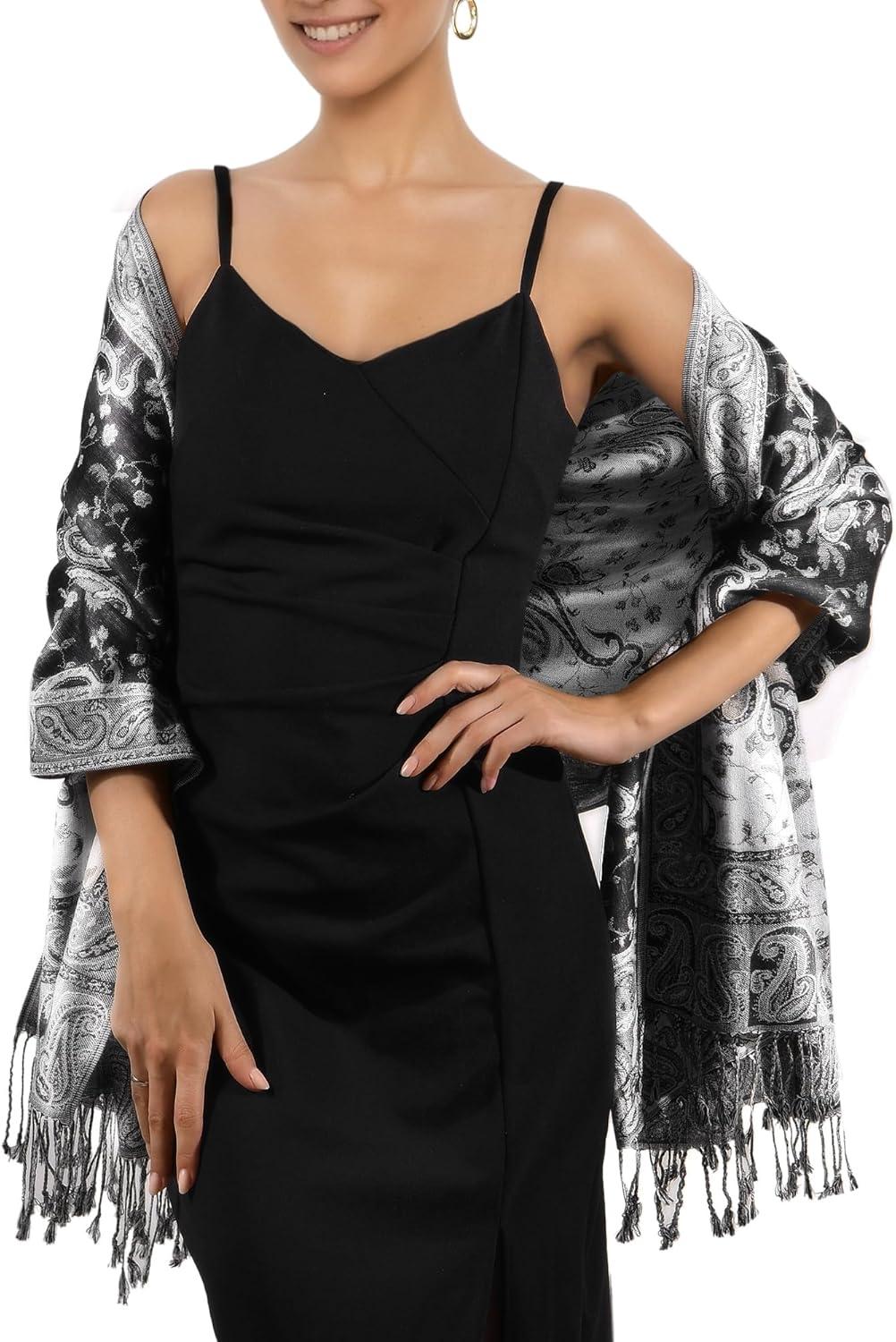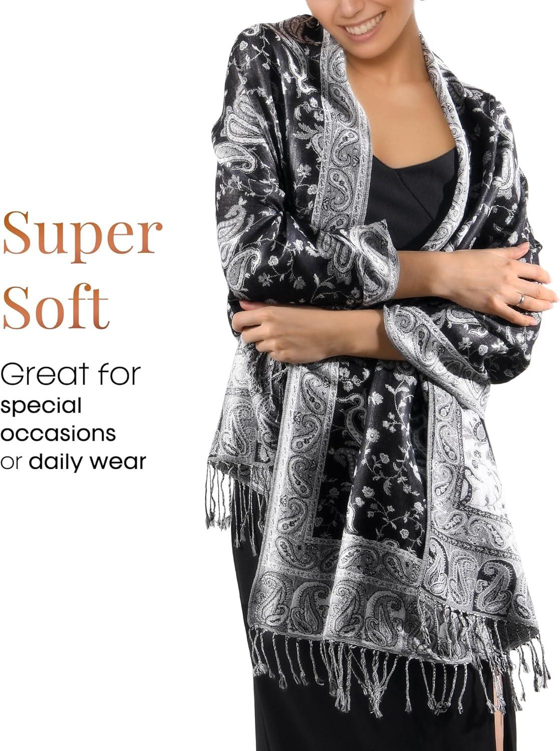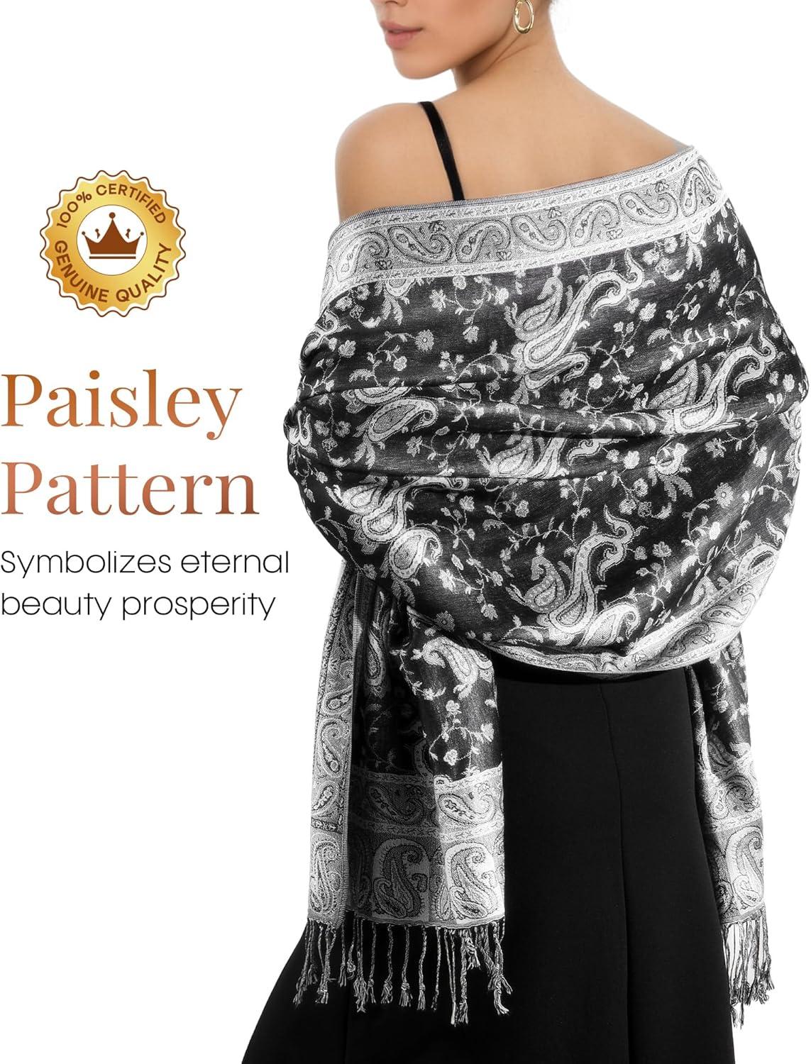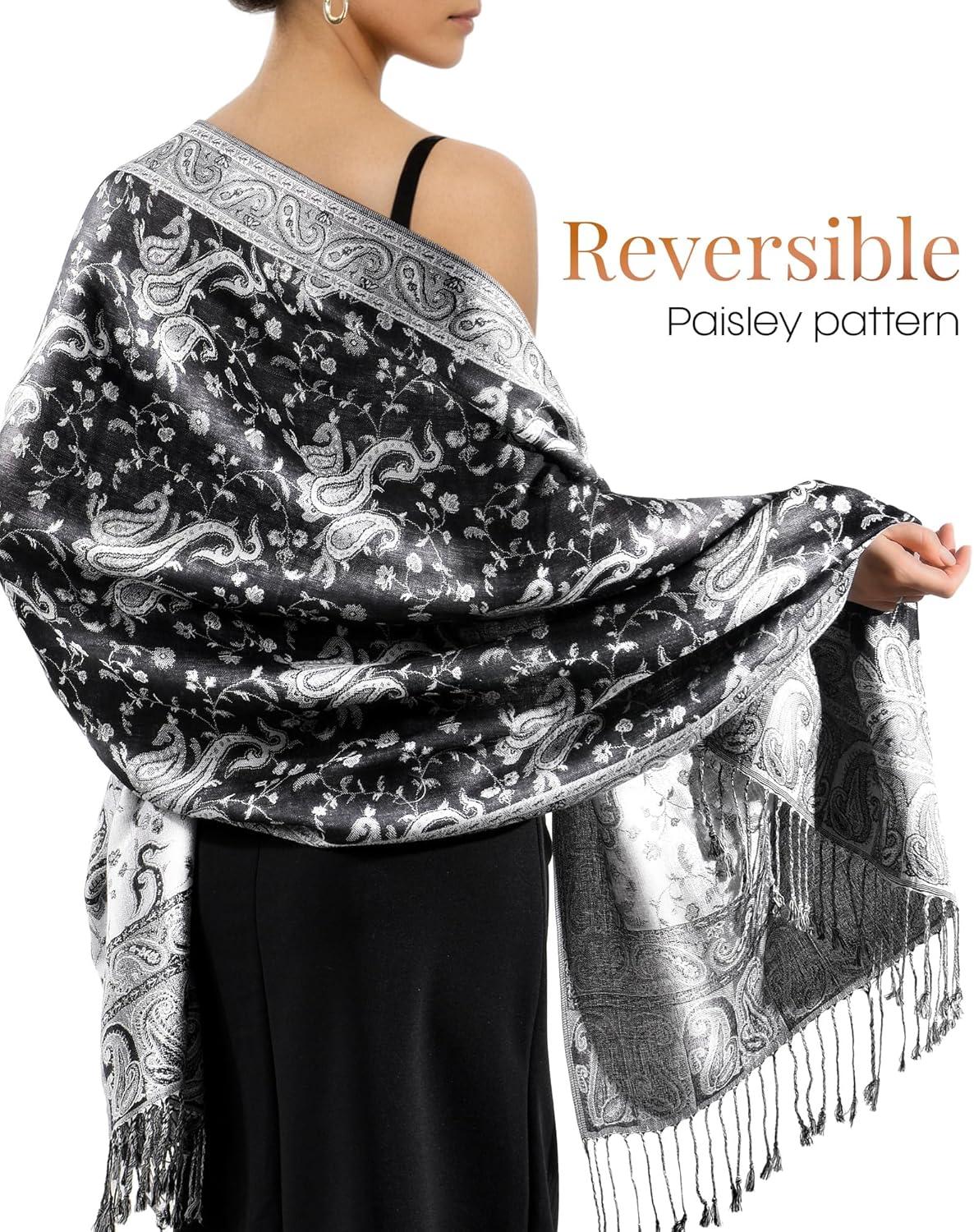 FURTALK Reversible Paisley Pashmina Shawl Wraps for Women Soft Exotic Indian Rave Scarf for Evening Dress Festival Scarves(Black White)